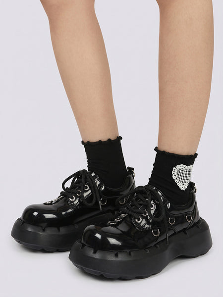 PINJIAHUI | Lace-up Patchwork Platform Shoes