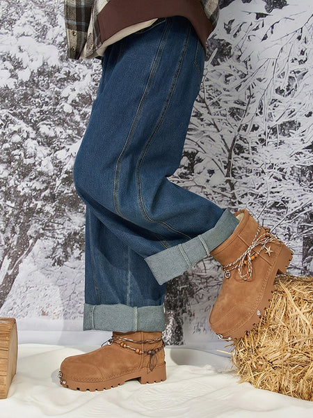 PINJIAHUI | Y2K Platform Fuzzy Star Detail Snea...