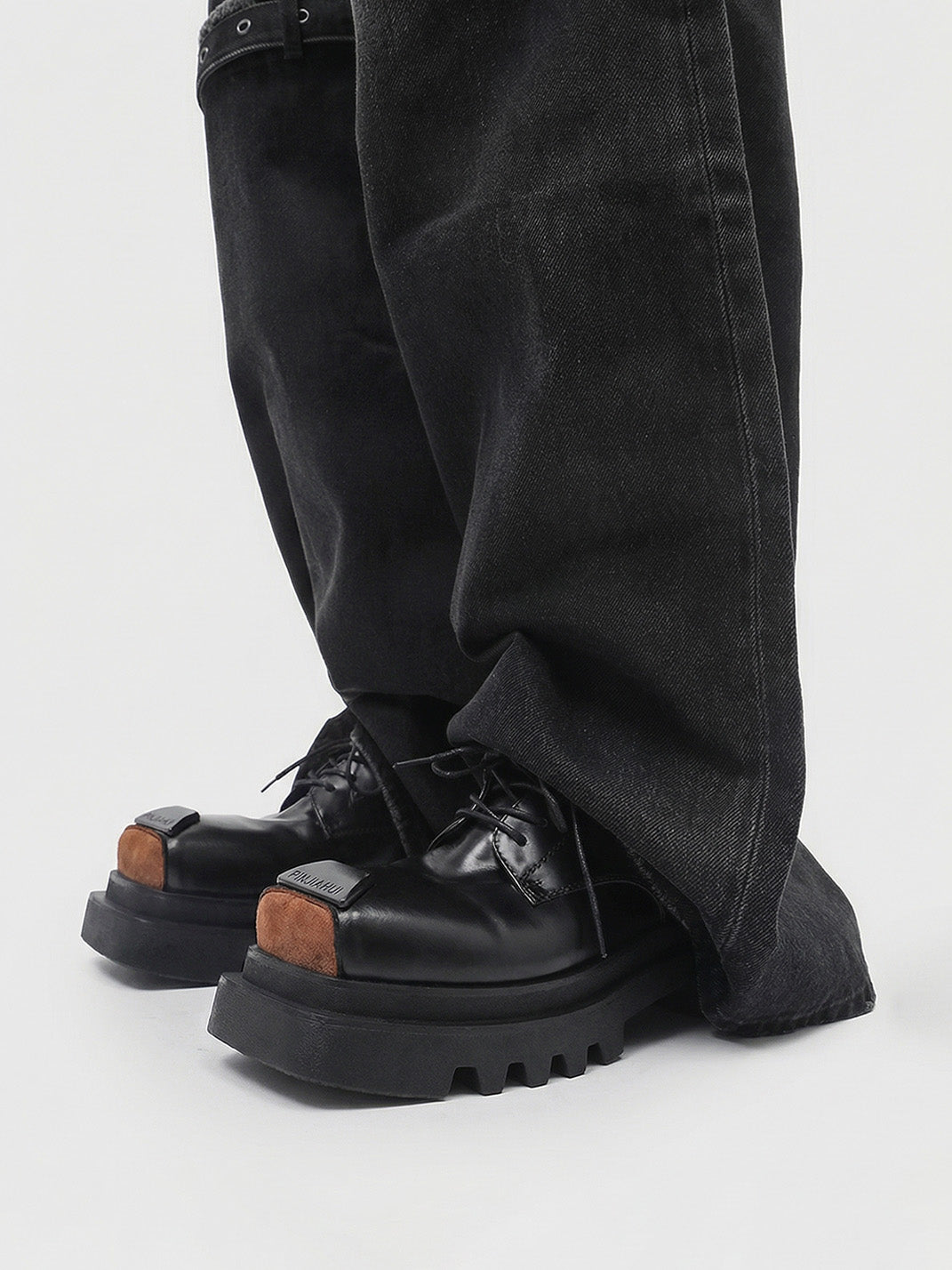 PINJIAHUI | Retro Square-toe Derby Shoes