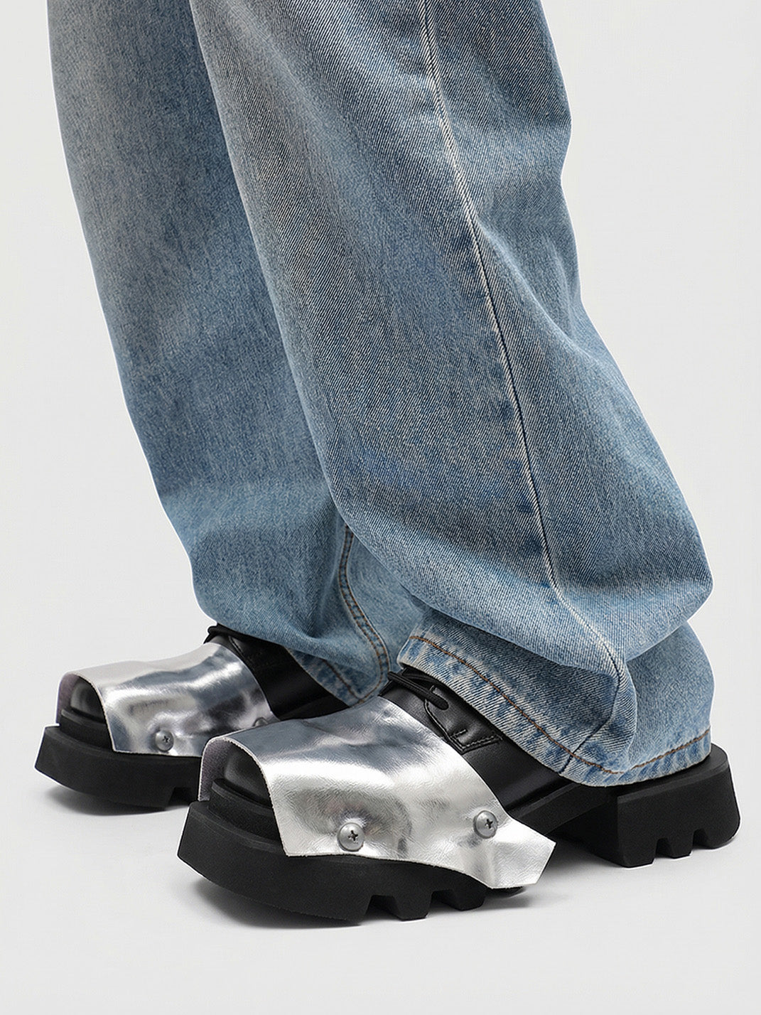 PINJIAHUI | Silver Square-toe Derby Shoes