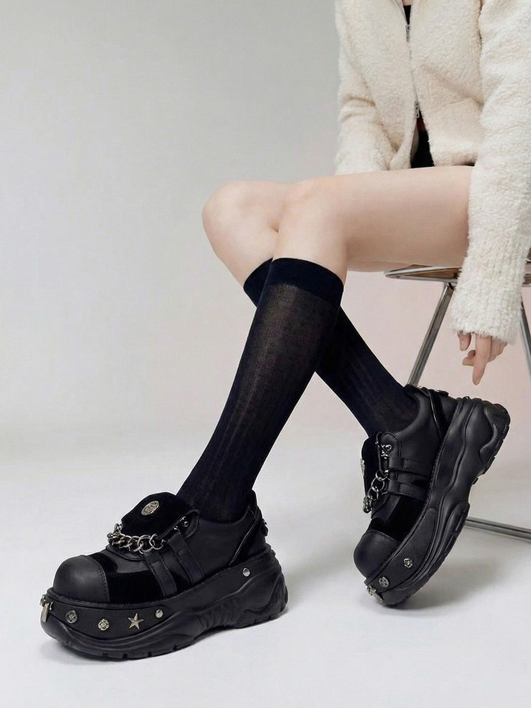 PINJIAHUI | Y2K Metal Detail Platform Shoes