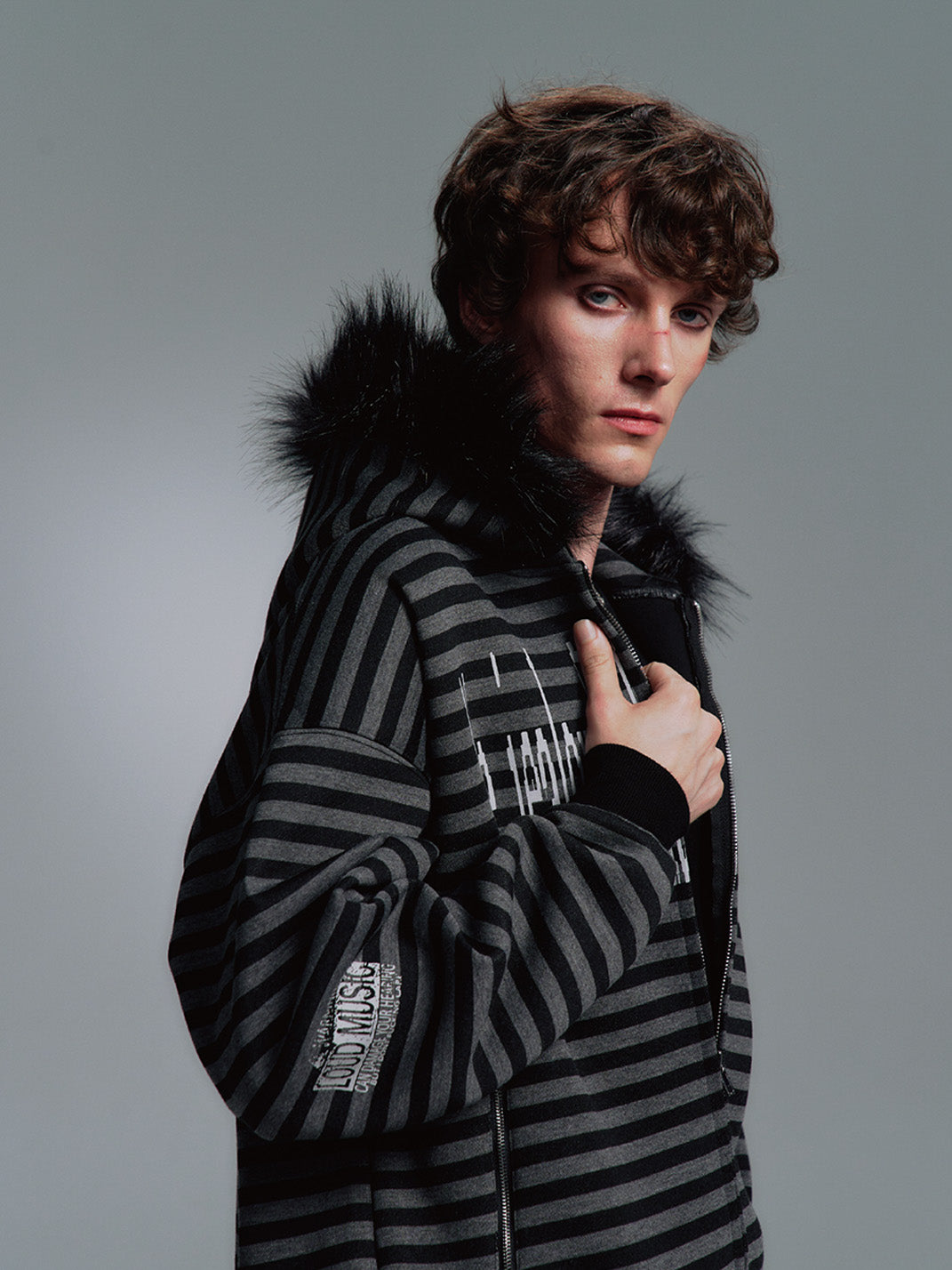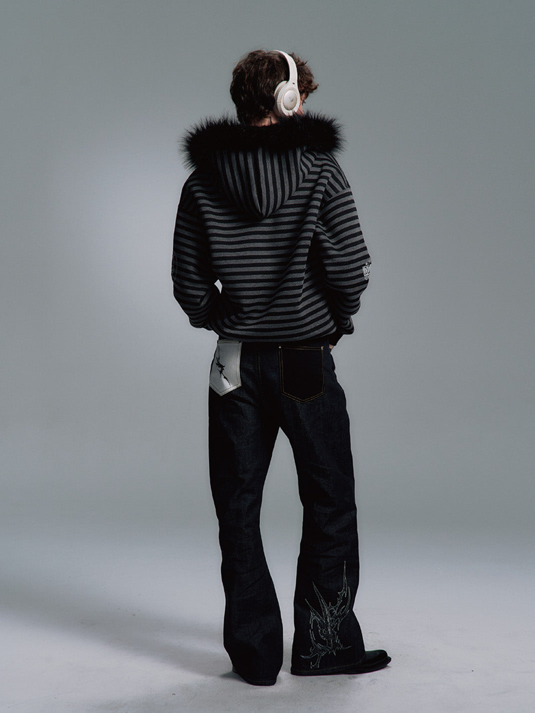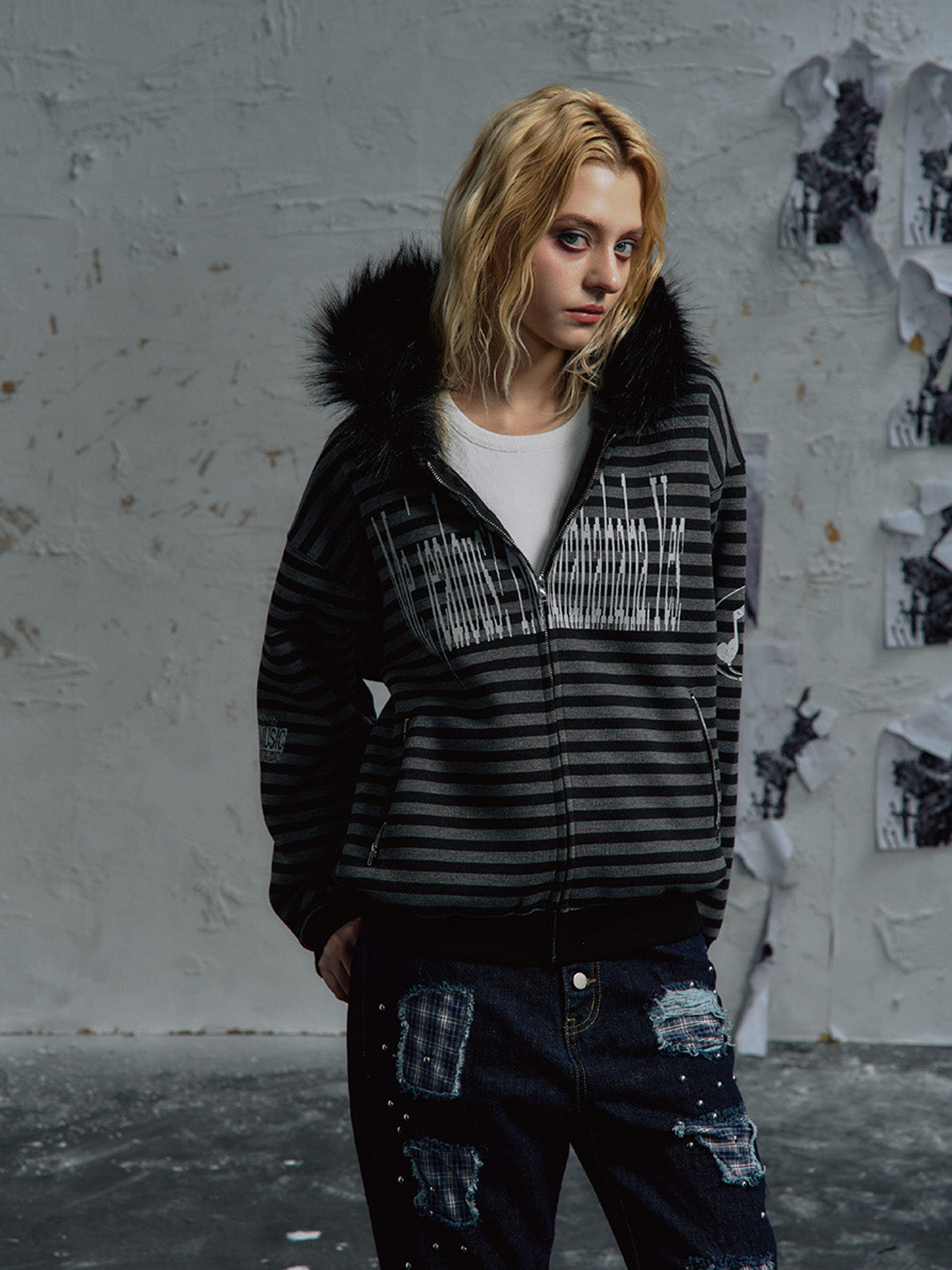 PAIKI | Faux Fur Collar Knit Hoodie Skip to content