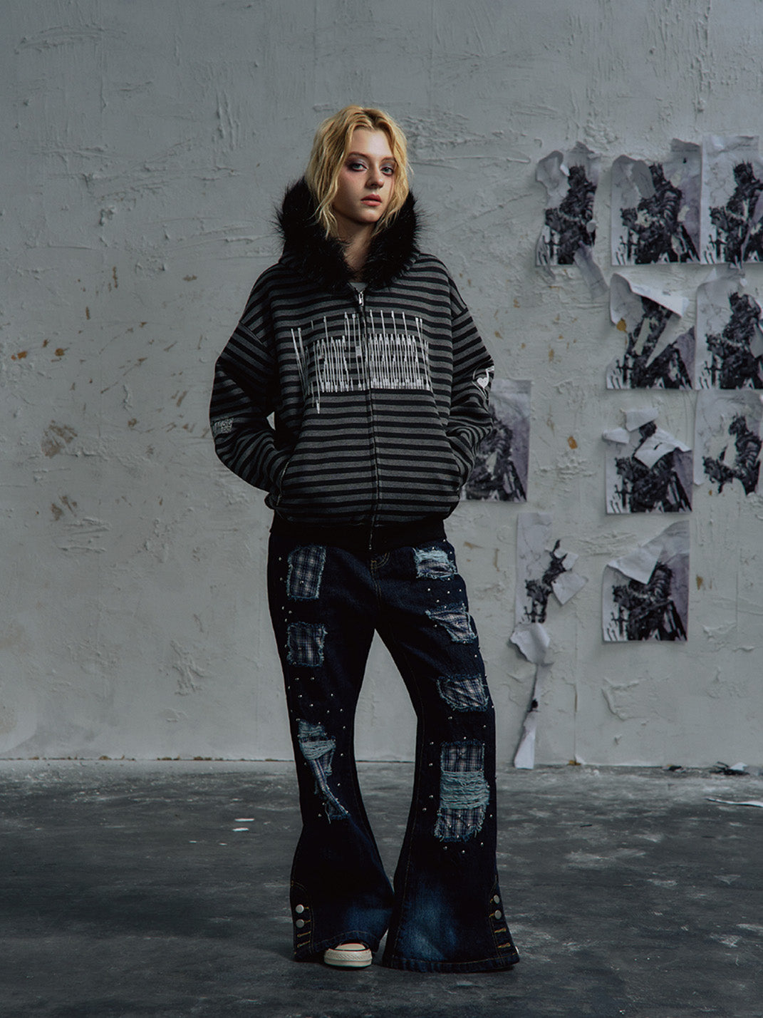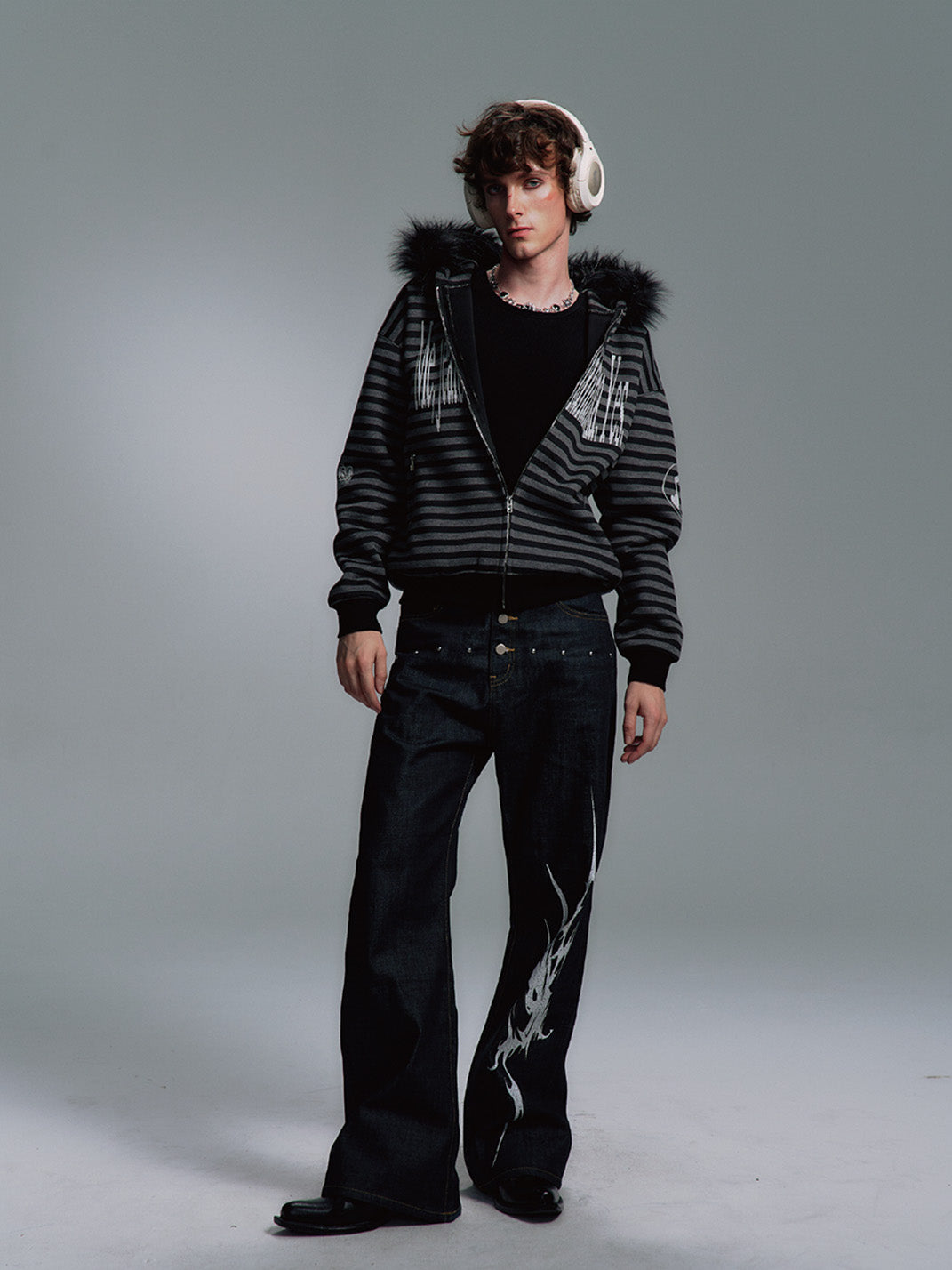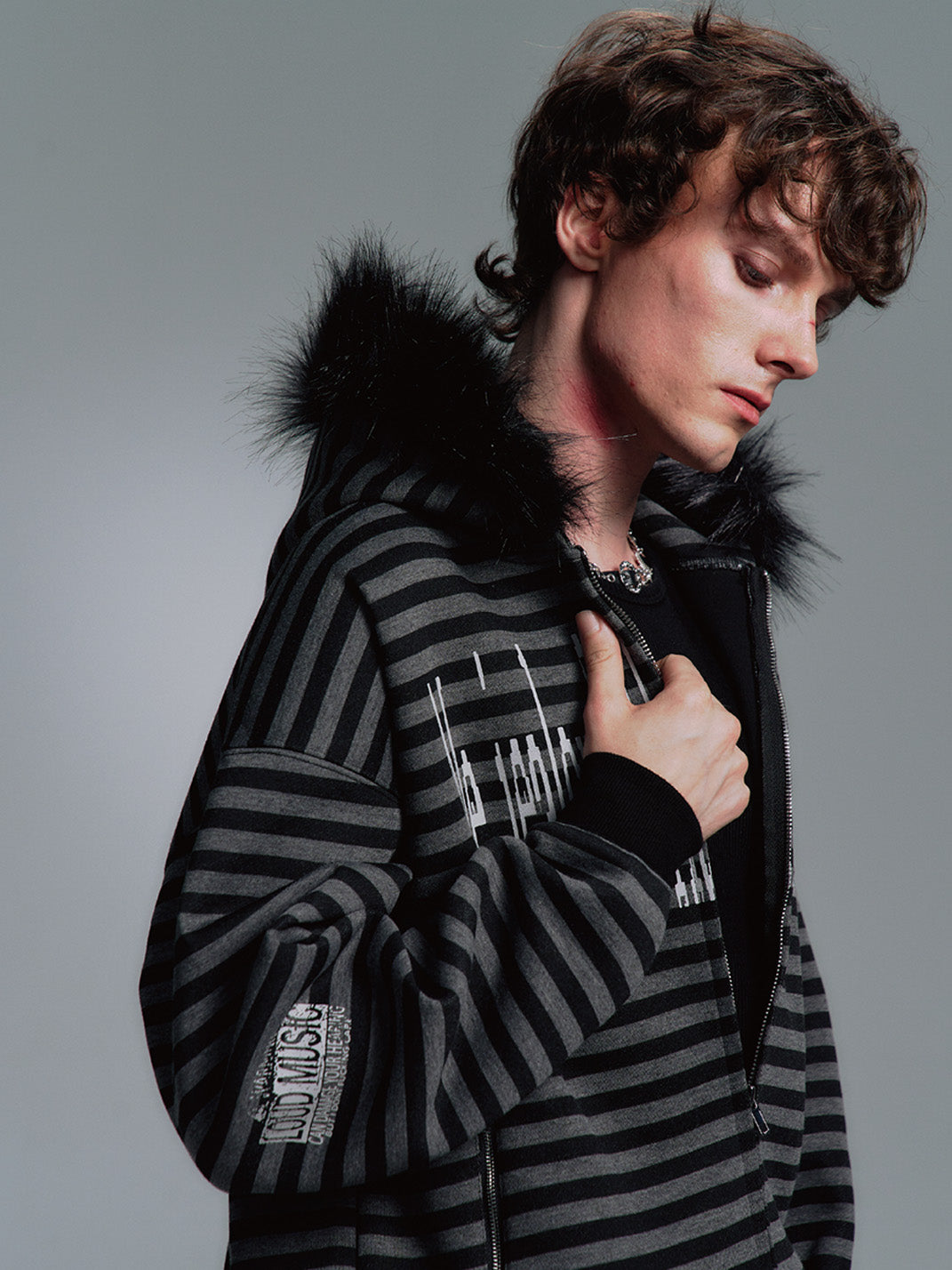 PAIKI | Faux Fur Collar Knit Hoodie Skip to content
