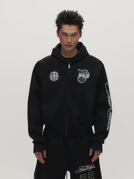 1997 | Distressed Tribal Graphics Zip- Up Hoodie