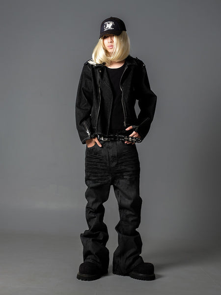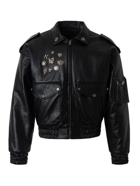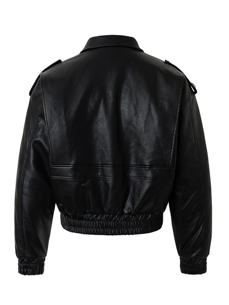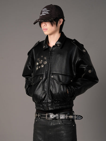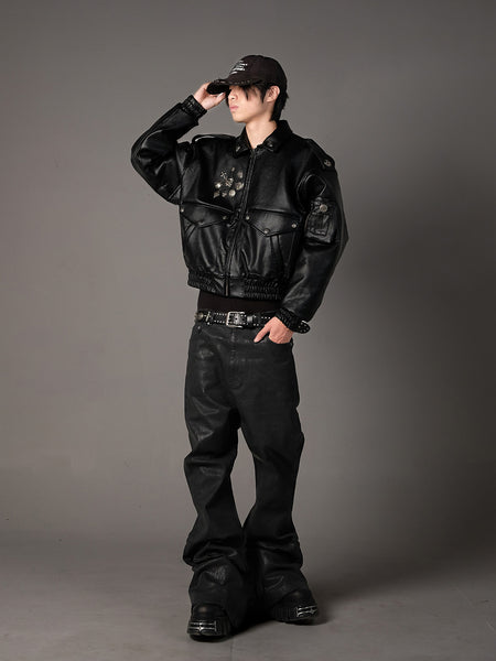 Recover Zone | Distressed Rivet PU Cropped Jacket