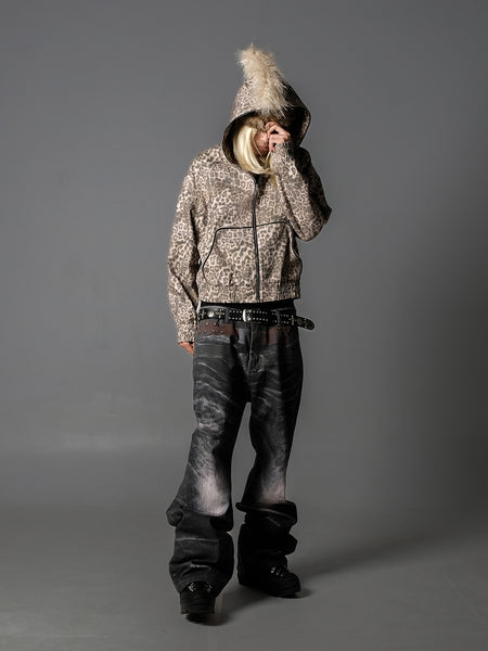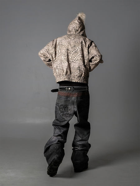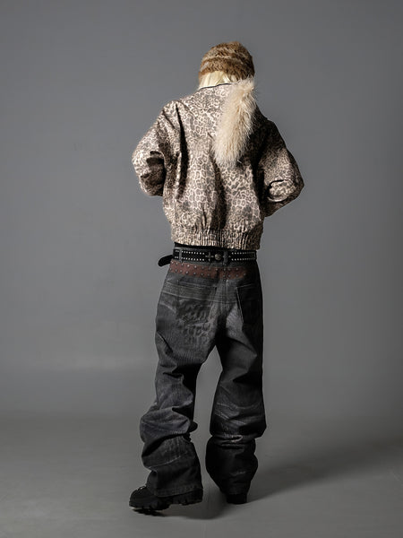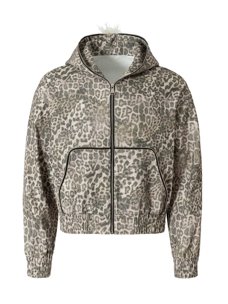 ICH MODE | Retro Suede Leopard Print Lapel Jacket
