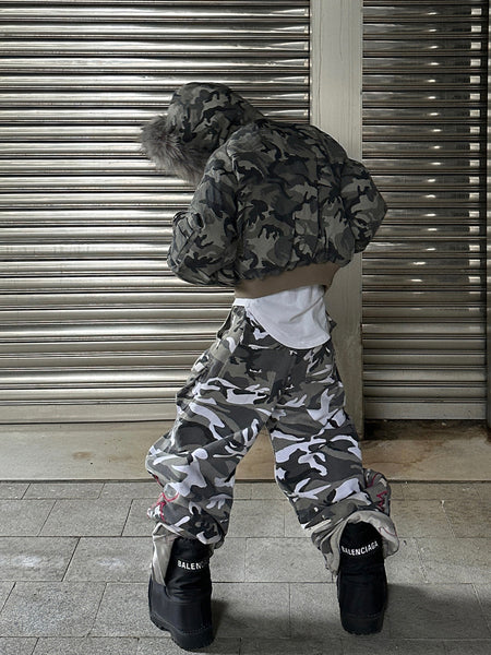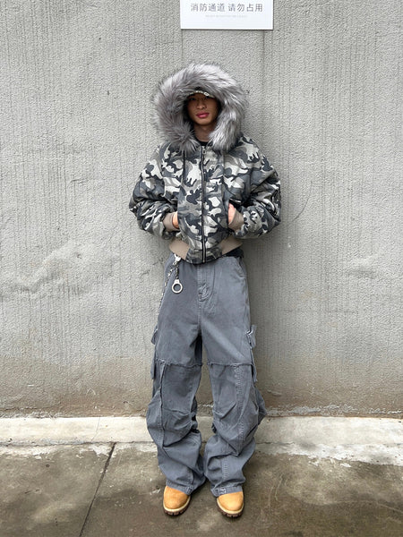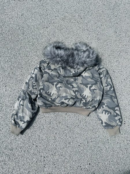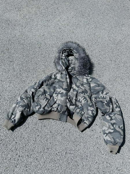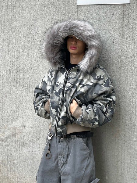 Recover Zone | Camo Faux-Fur Collar Bomber Jacket
