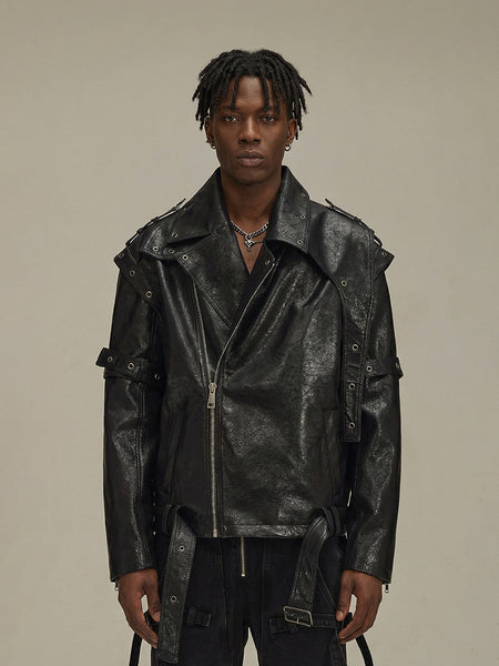 Flyerrer | Asymmetrical Strapped Sleeves Leathe...