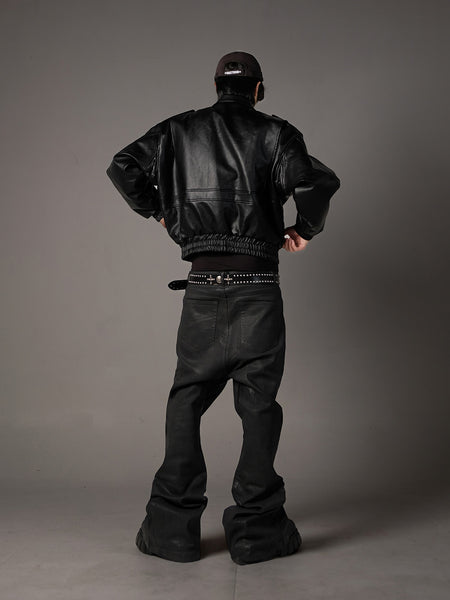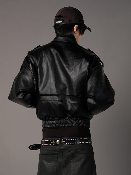 TRIANGLE PROJECT | Boxy Cropped Leather Bomber ...