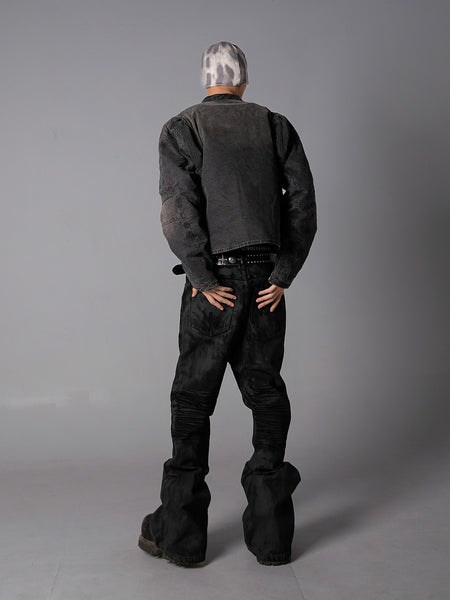 Flyerrer | Pleated Mud-Dye Painted Quilted Deni...