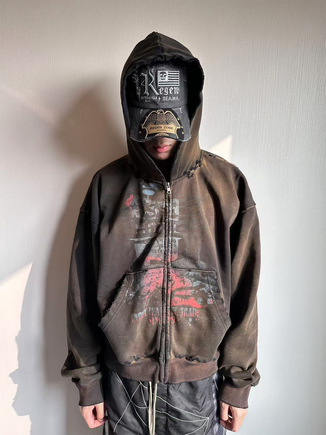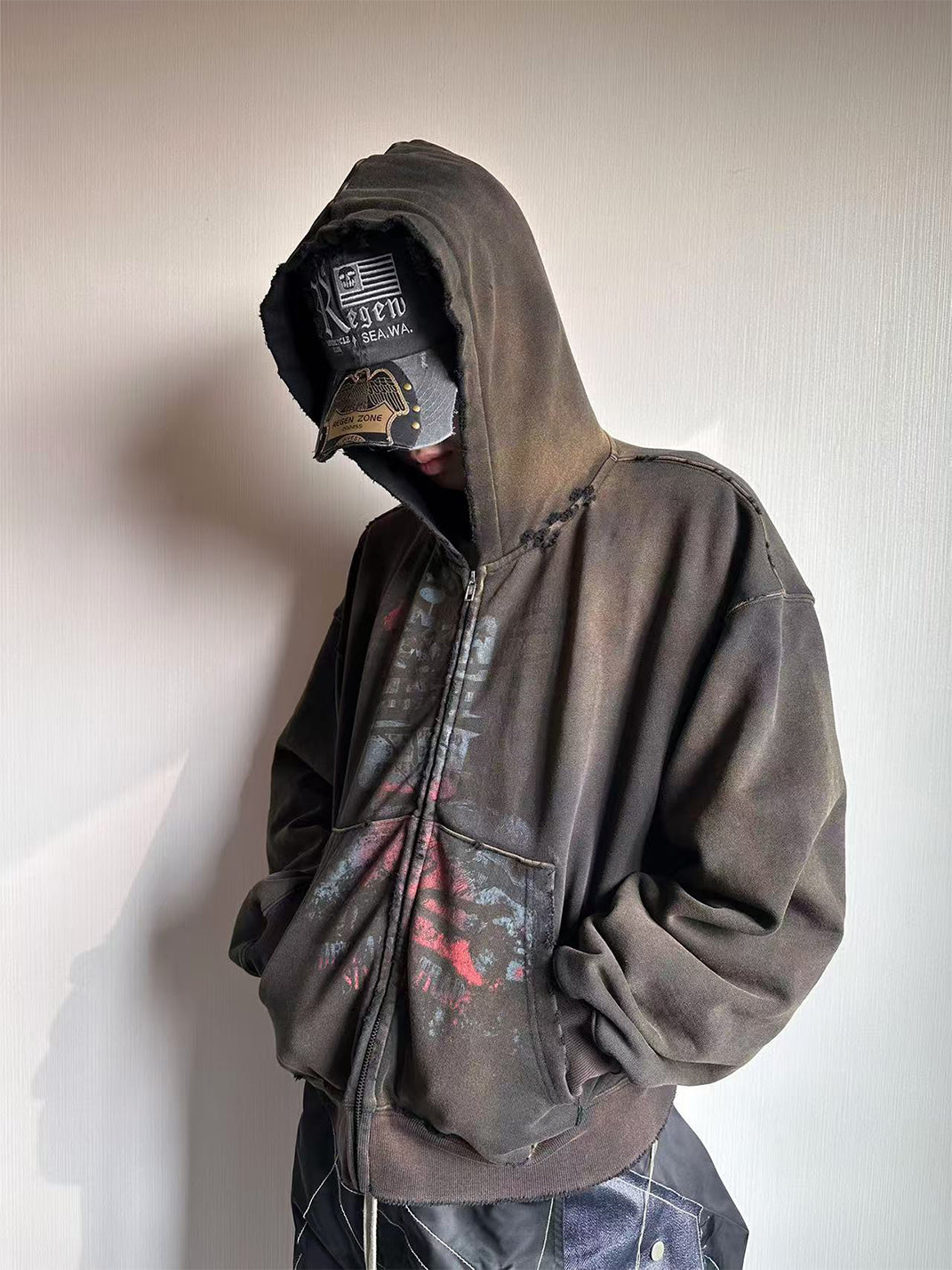 Undergoes multiple washes for a faded, distressed look, exuding a strong vintage vibe.