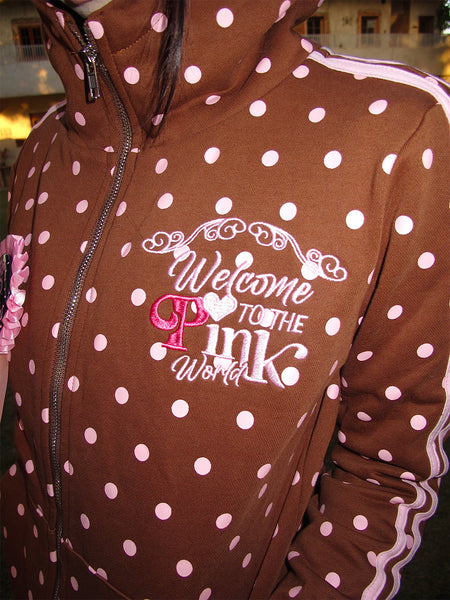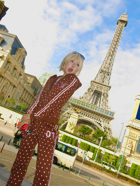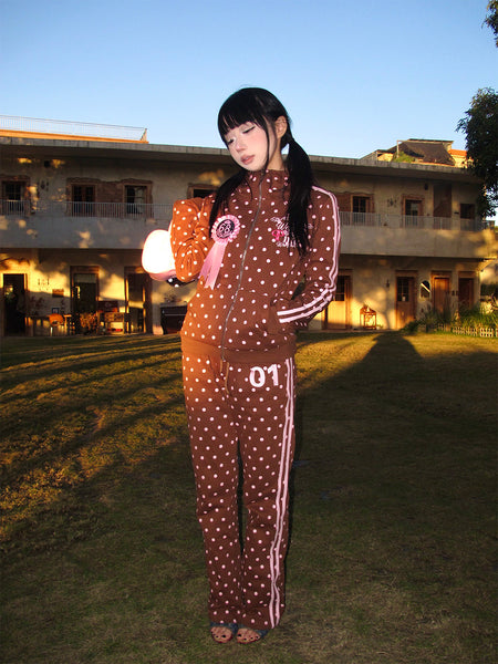 Riri Girls | Pink Polka Dot Y2K Brown Tracksuit