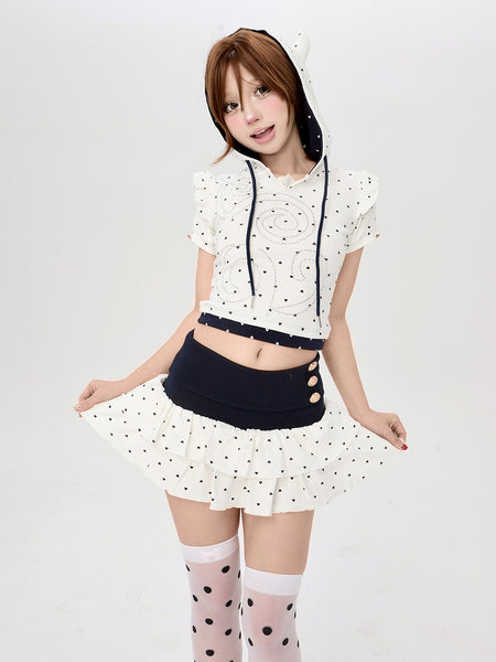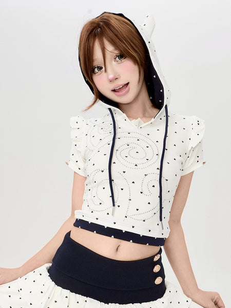 Riri Girls | Heart-Print Puff-Sleeve Mini Skirt...