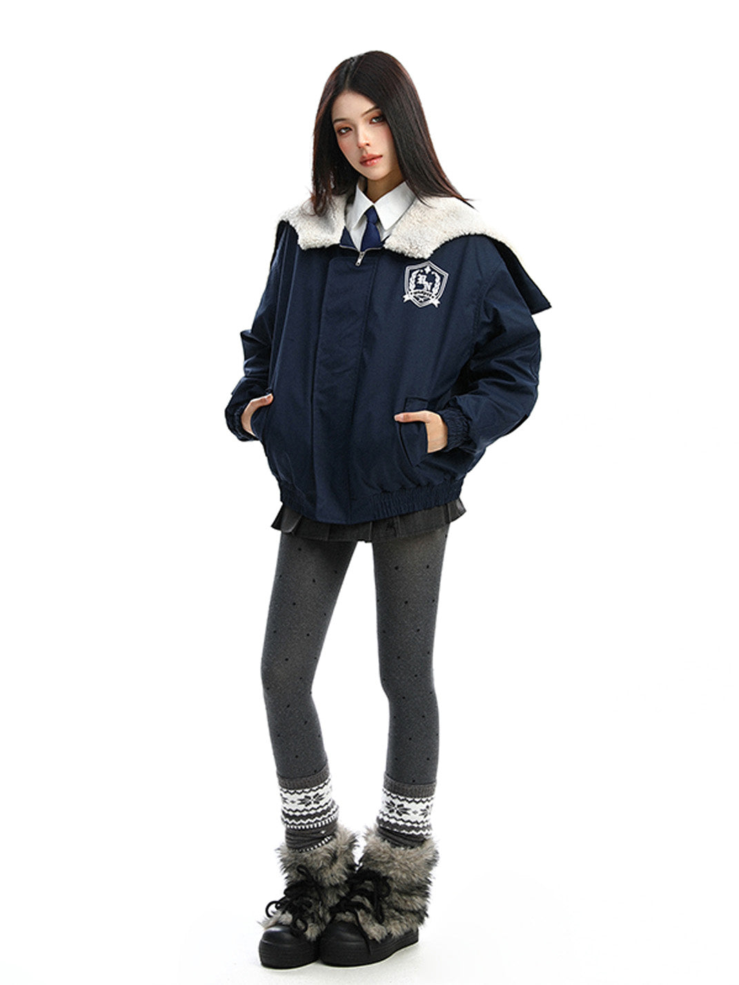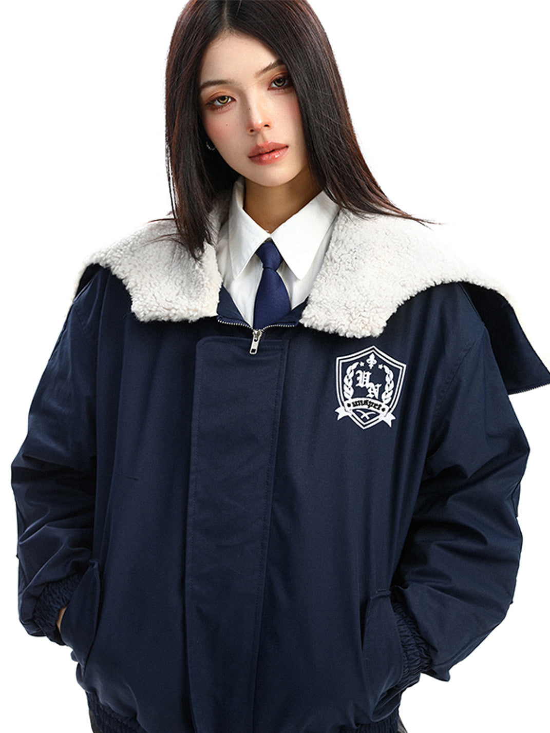 BIGGOLD | Lamb Wool Spliced Zipper Coat