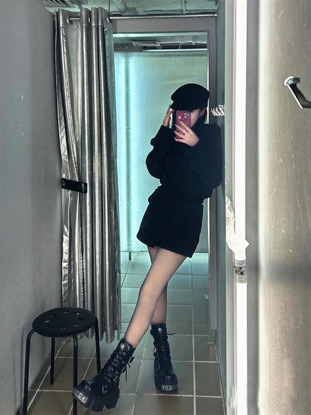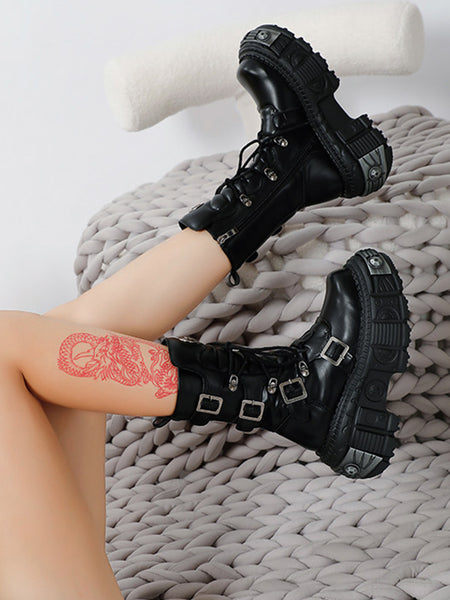 SISTER CURIE | Punk Platform Mid-Calf Combat Boots