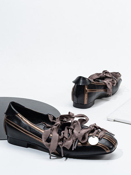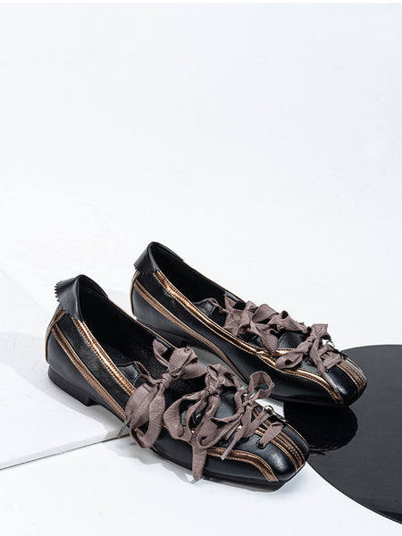 SISTER CURIE | Satin Square-Toe Bow Flat Mary J...