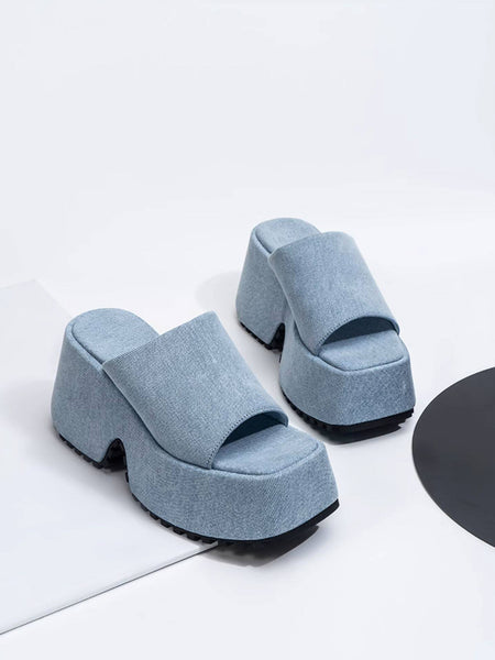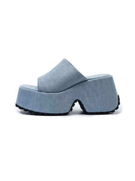 SISTER CURIE | Square-Toe Platform Denim Sandals
