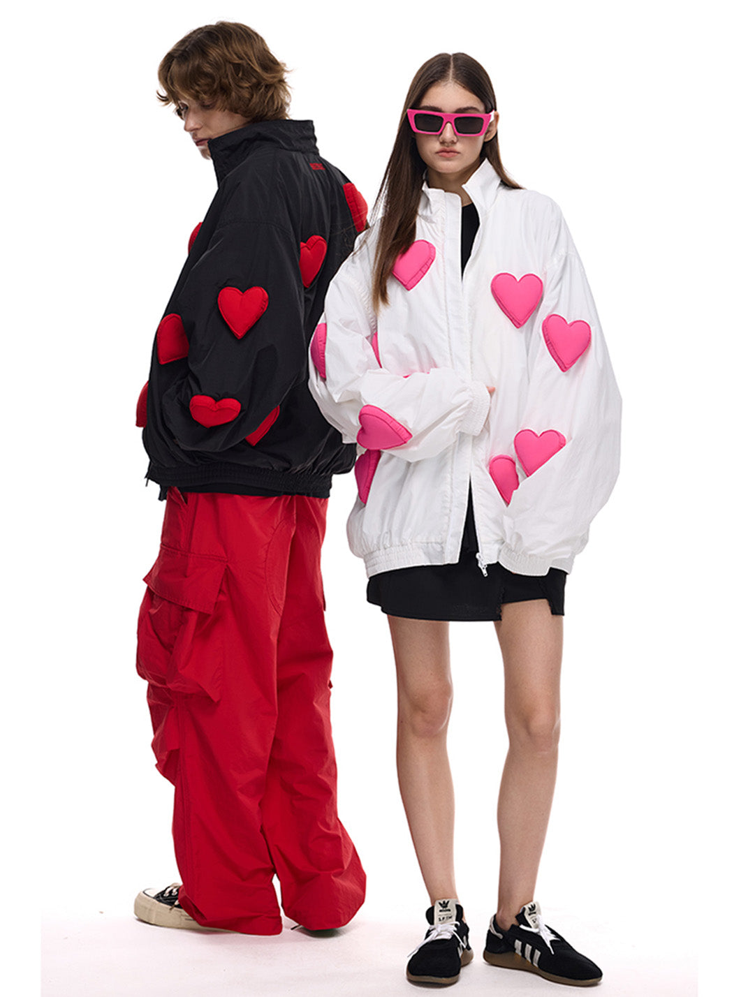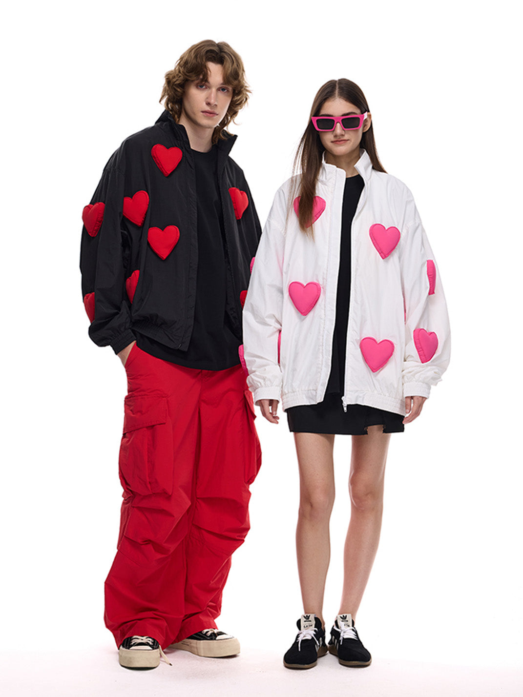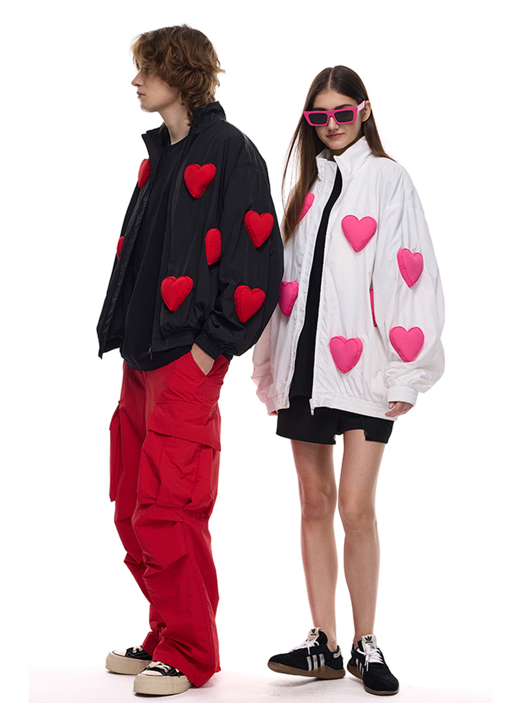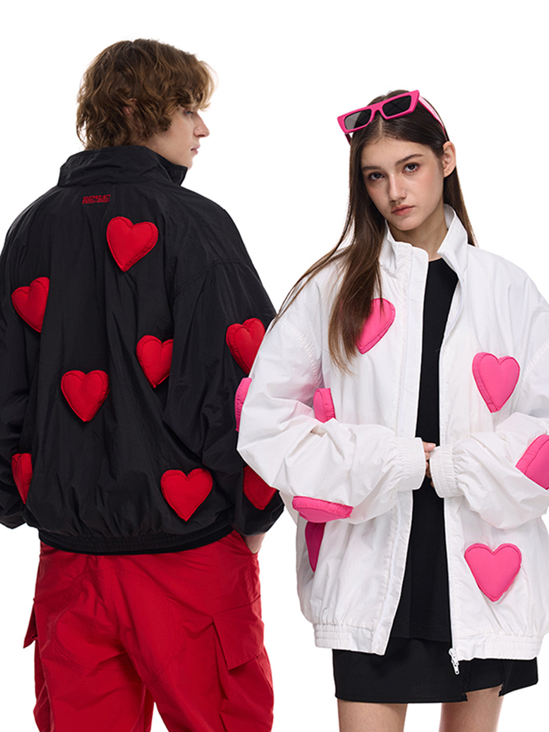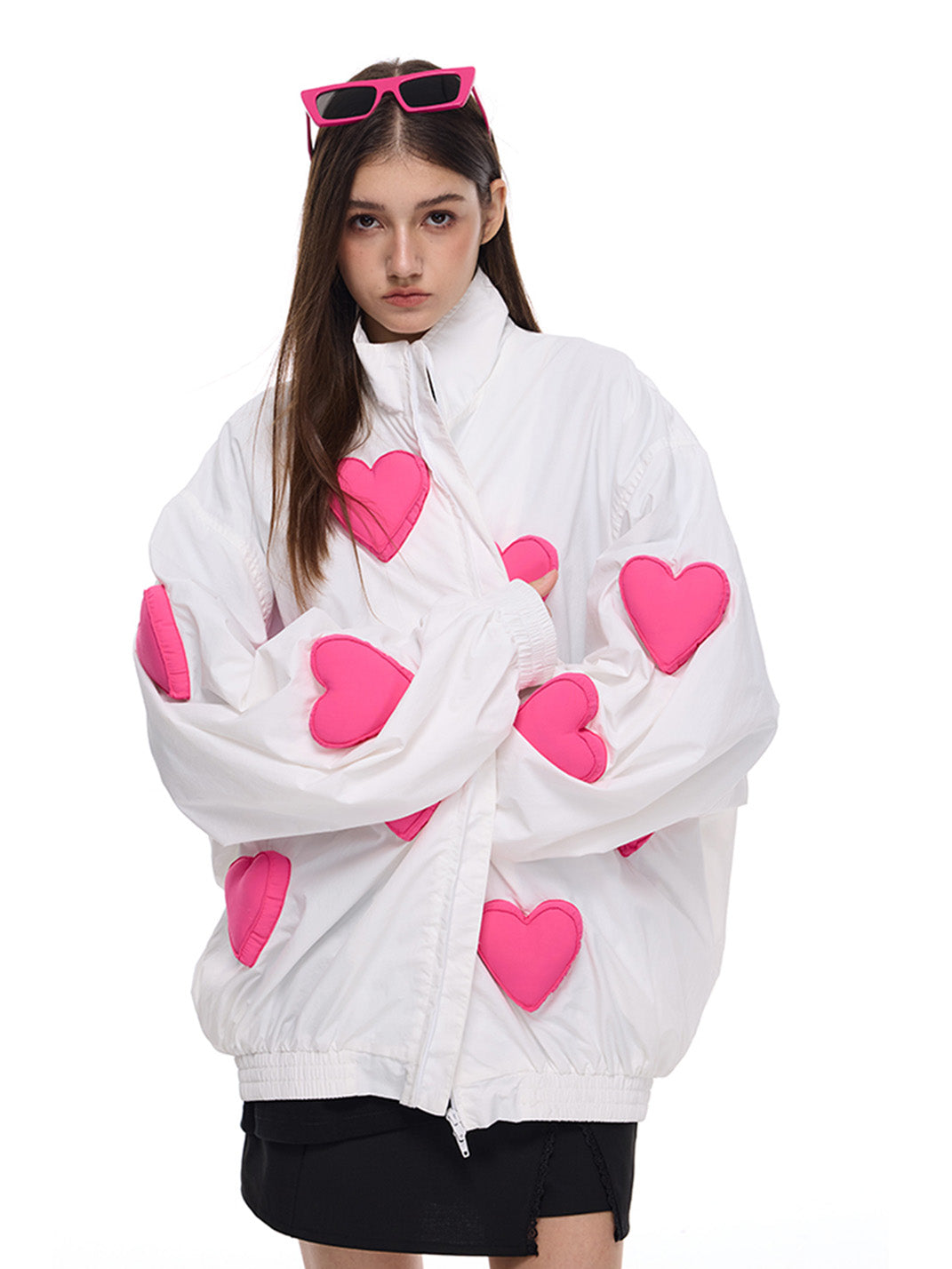 SQQZ PROJECT | 3D Heart Puffer Patch Windbreaker Jacket Skip to content