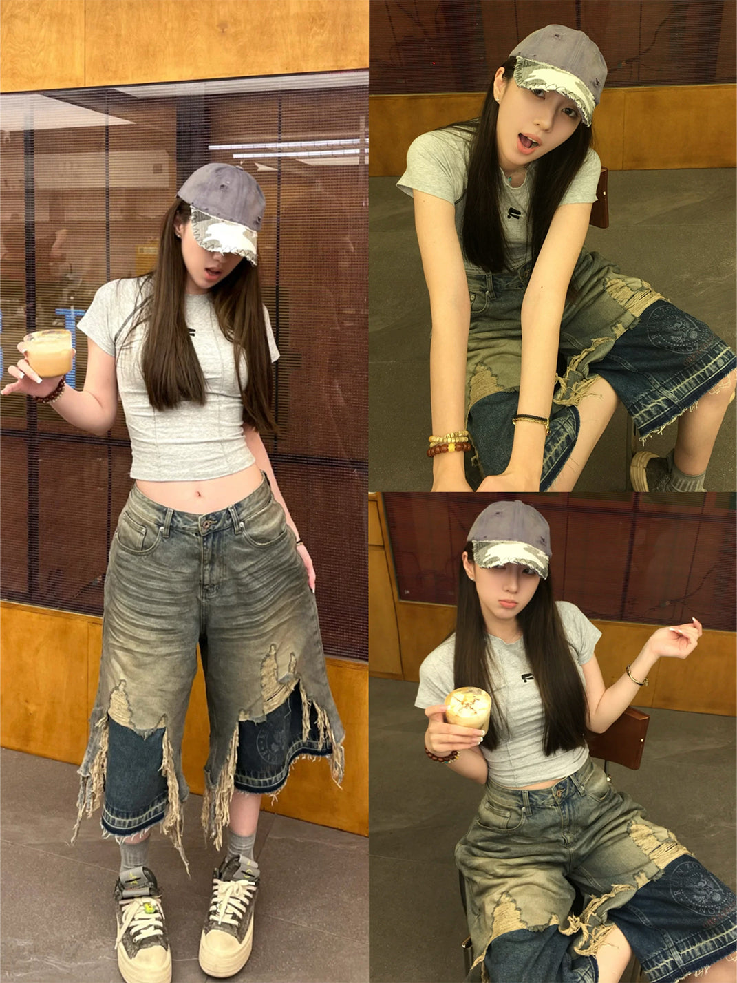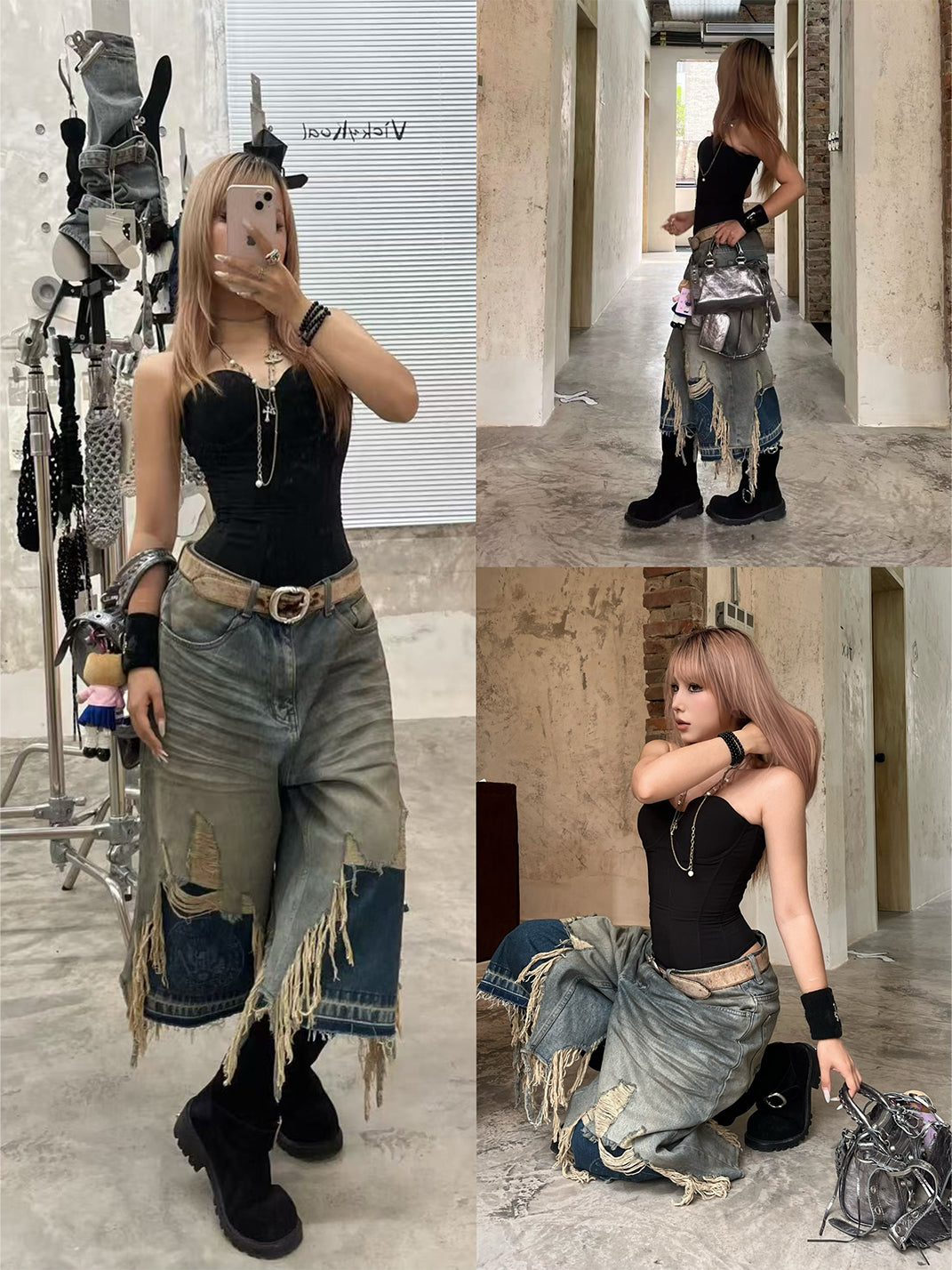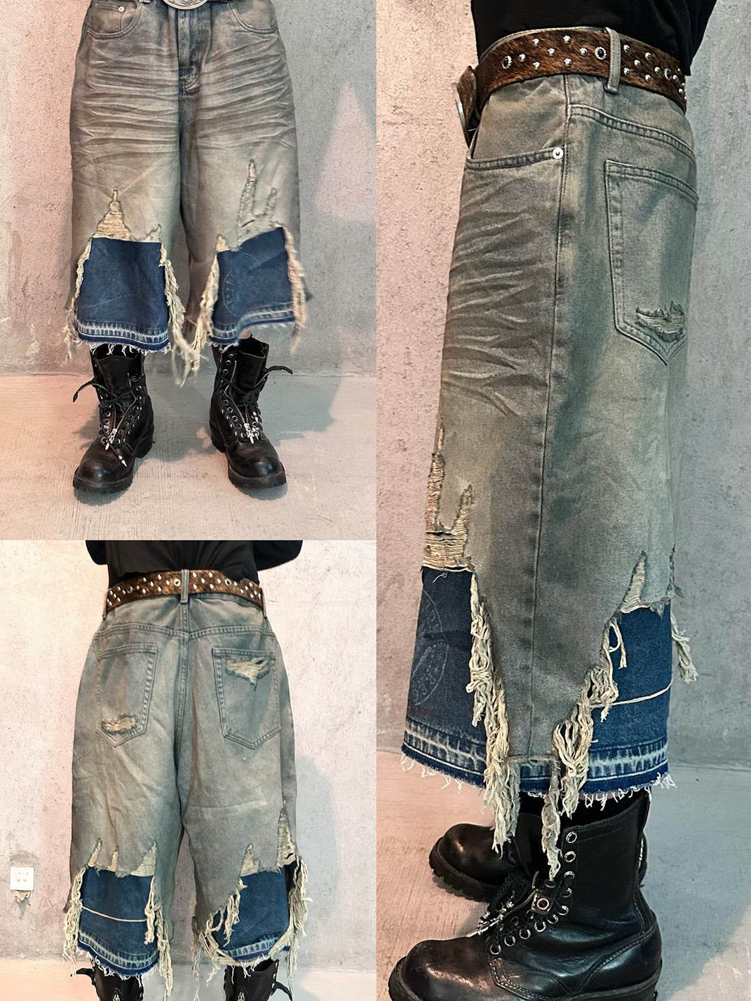 REGEN ZONE | "RIOT" Samurai Distressed Patchwork Cropped Pants Skip to content
