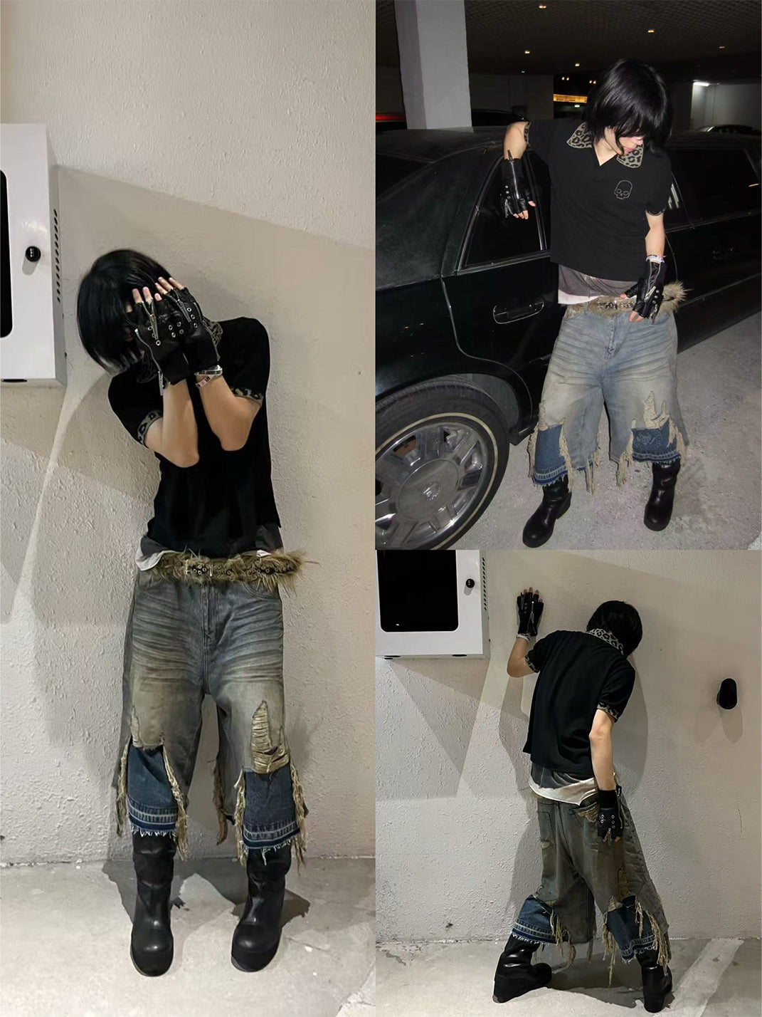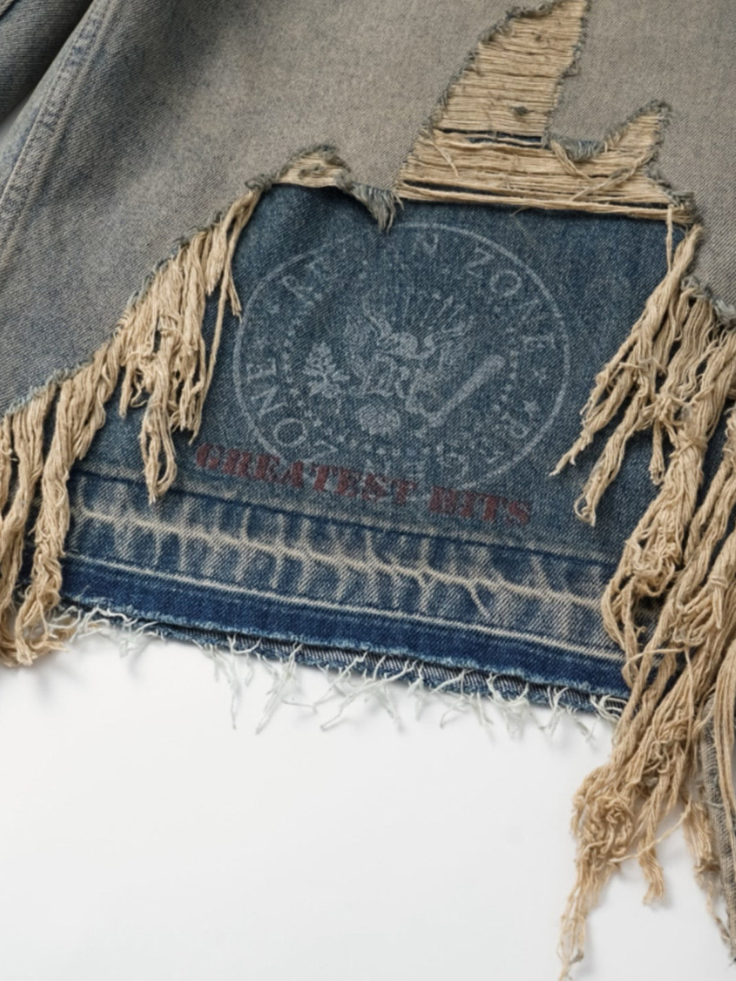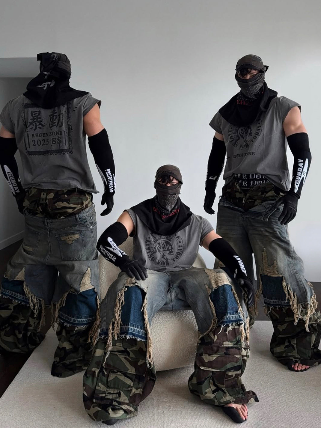 REGEN ZONE | "RIOT" Samurai Distressed Patchwork Cropped Pants