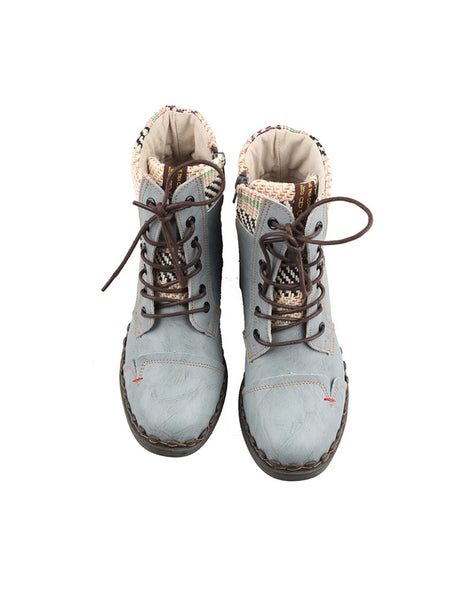 TMA EYES | Hand-Stitched Woven Lace-Up Boots-Gray