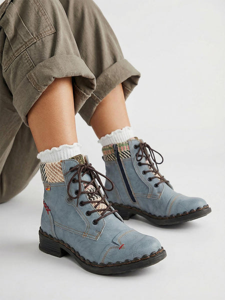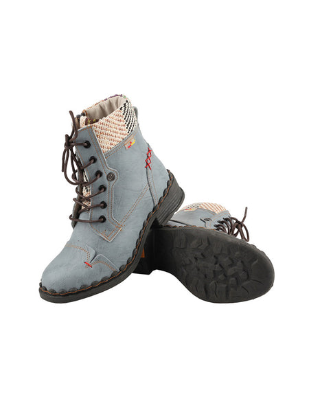 TMA EYES | Hand-Stitched Woven Lace-Up Boots-Blue
