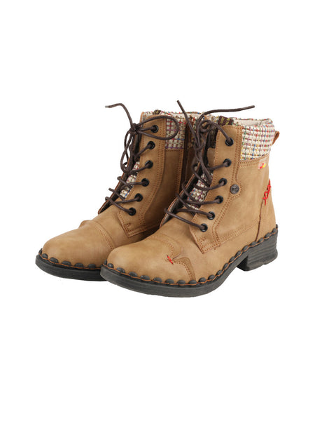 TMA EYES | Hand-Stitched Woven Lace-Up Boots-Brown
