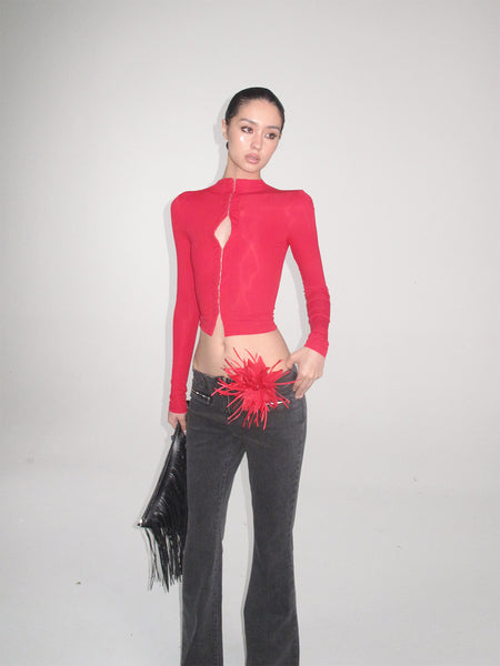 PAIKI | Wing-Shaped Fiery Pattern Distressed Cr...