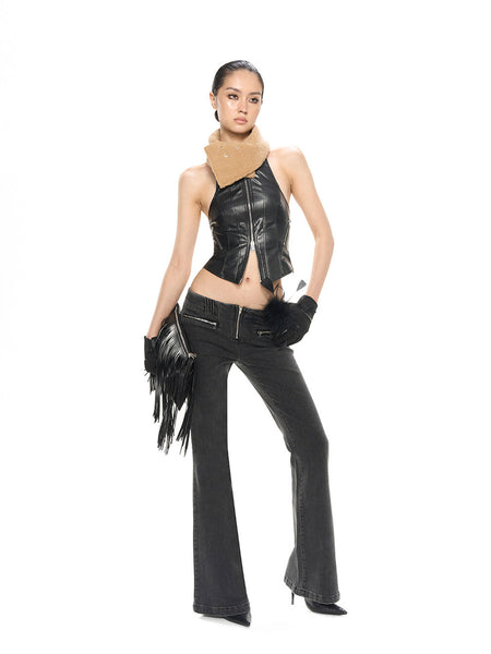 PAIKI | "Silent Shadow" Detachable Fur Collar C...
