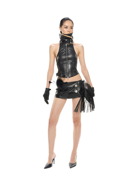 NOLA | Shell-Buttoned Pleated Bodycon Leather S...
