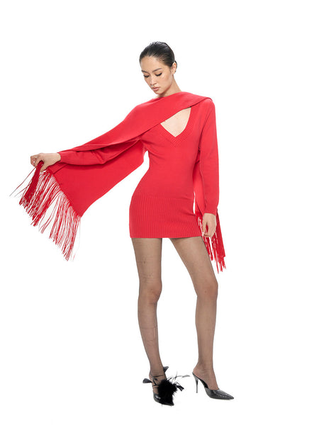 NOLA | Diamond-Print Ruffled Neckline Mesh Dress