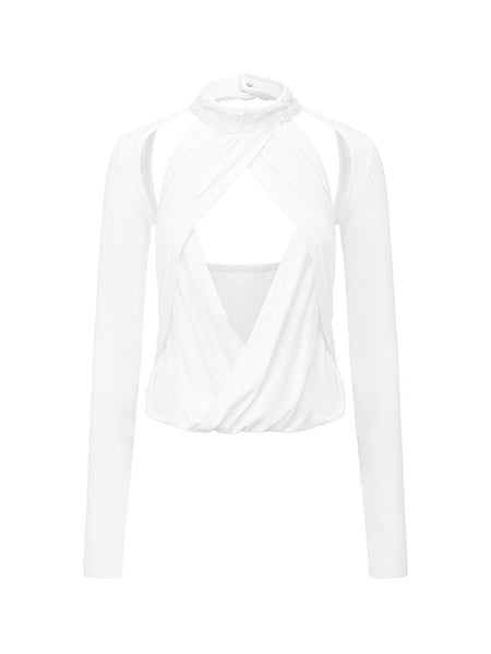 NOLA | Pleated Openwork Blouse and Skirt Set