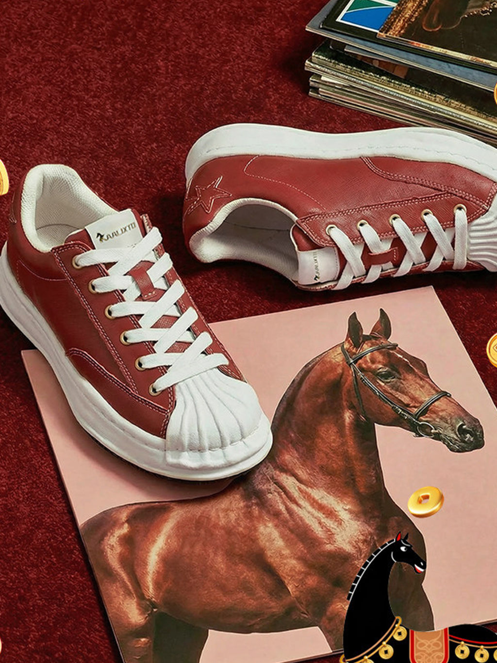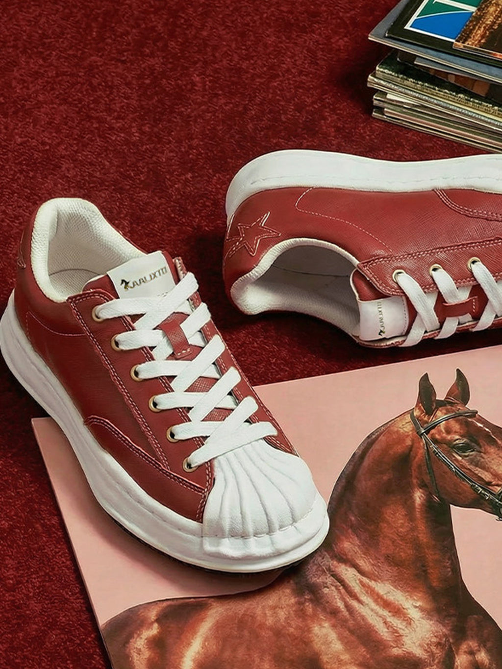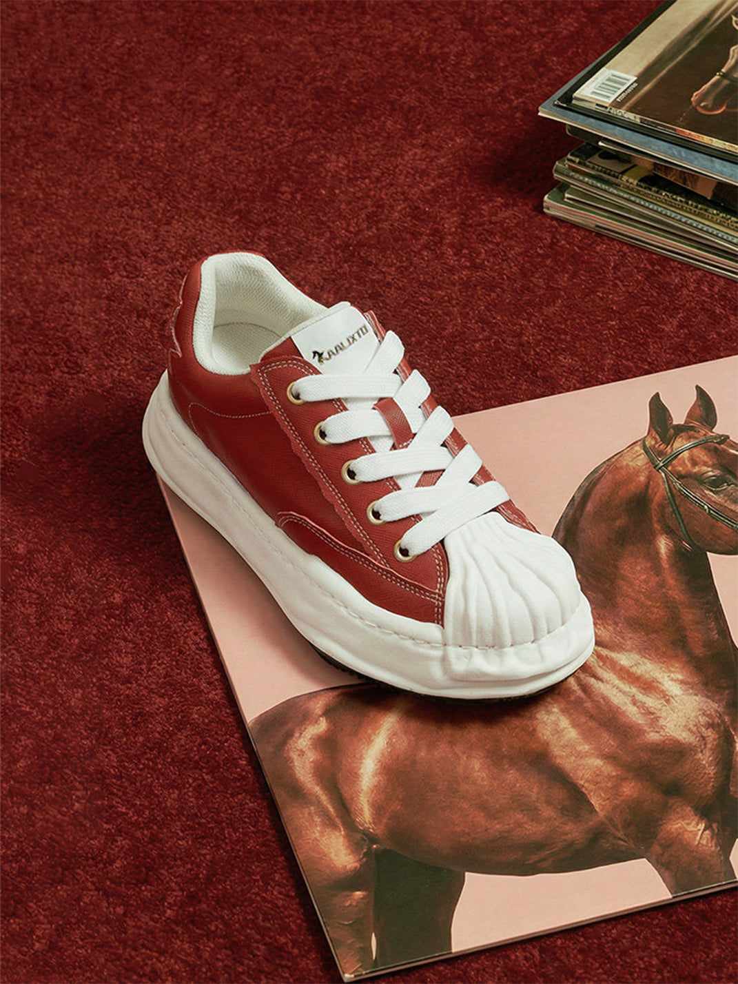 KAALIXTO | Red Shell Toe Sneakers with White Accents Skip to content