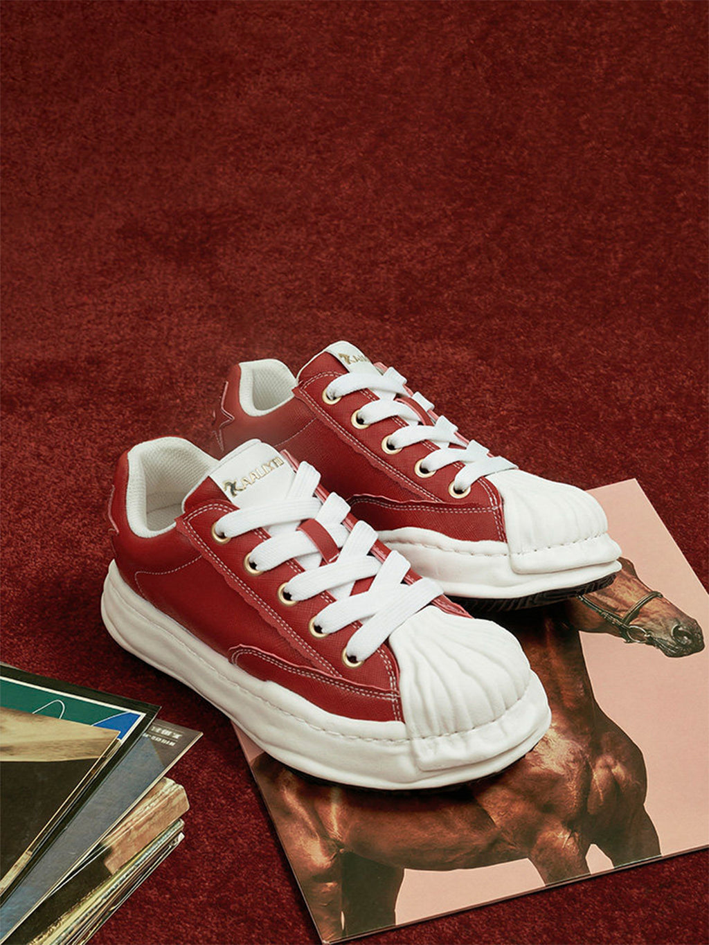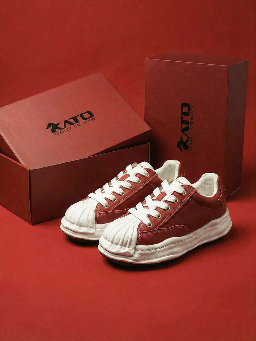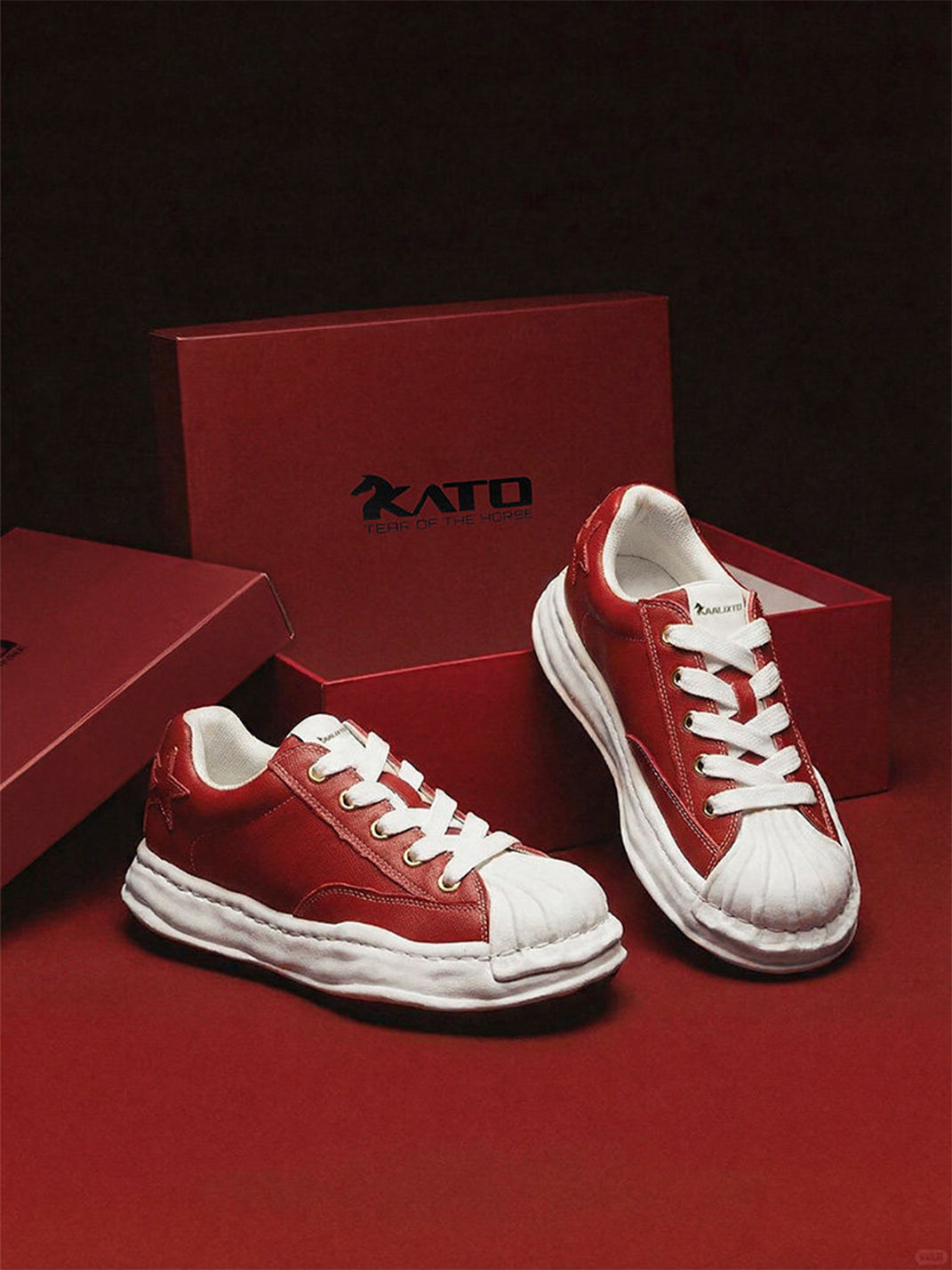 KAALIXTO | Red Shell Toe Sneakers with White Accents