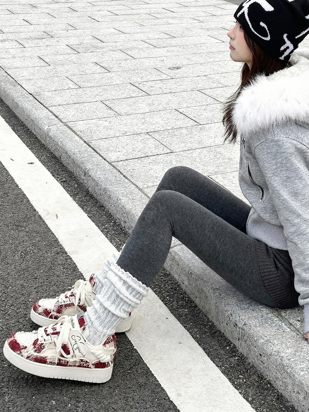 MQMS | Deconstructed Canvas Sneakers-Wine Red