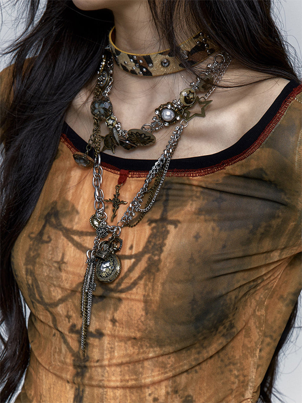 NO ROMANCE | Button Pocket Watch Piecing Pendant Necklace