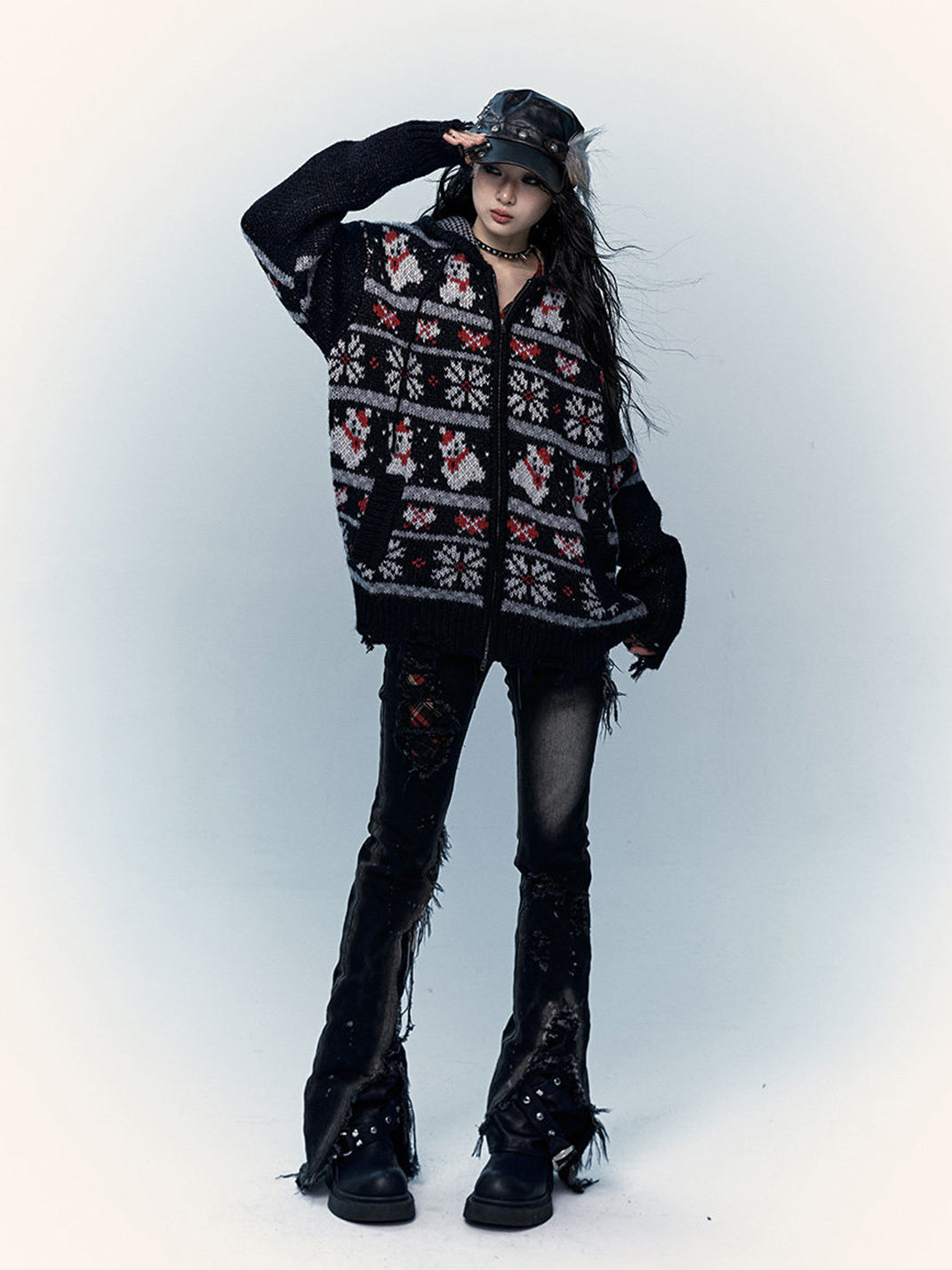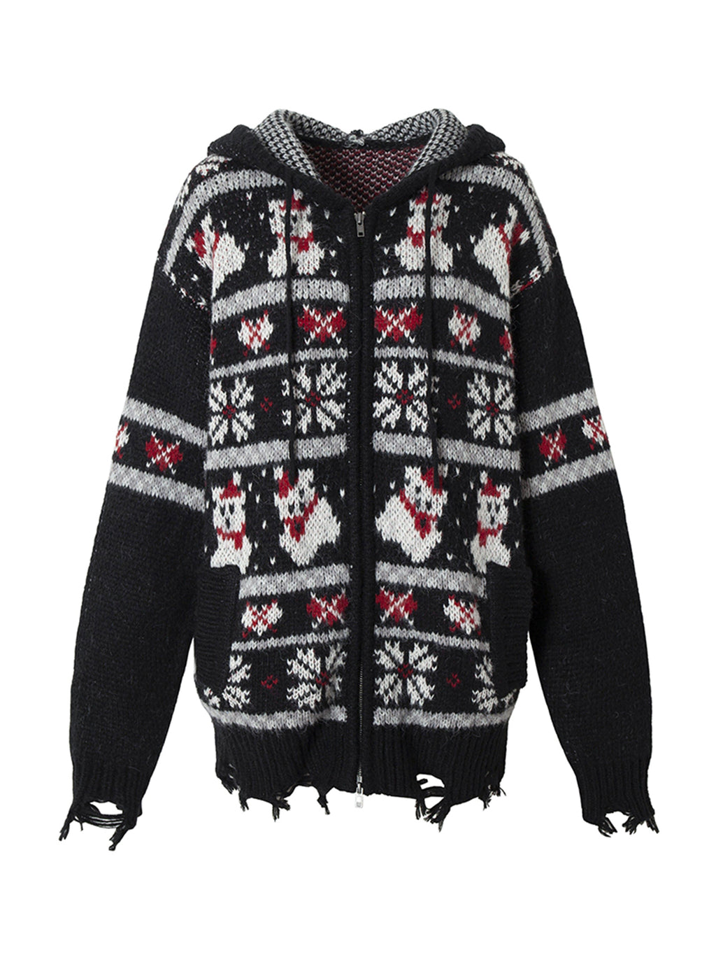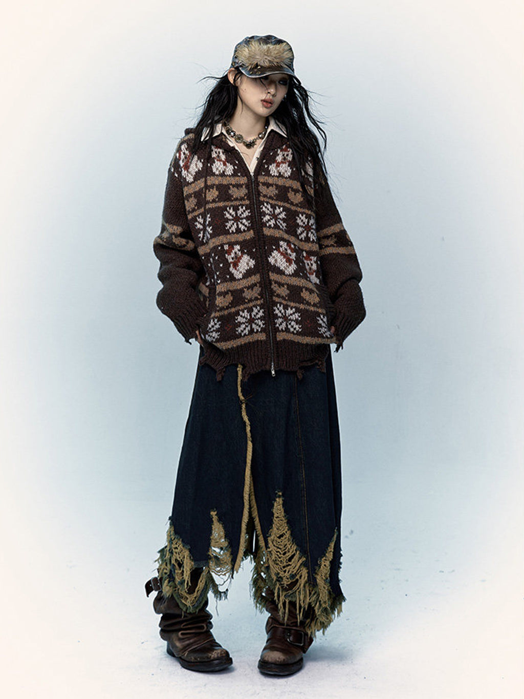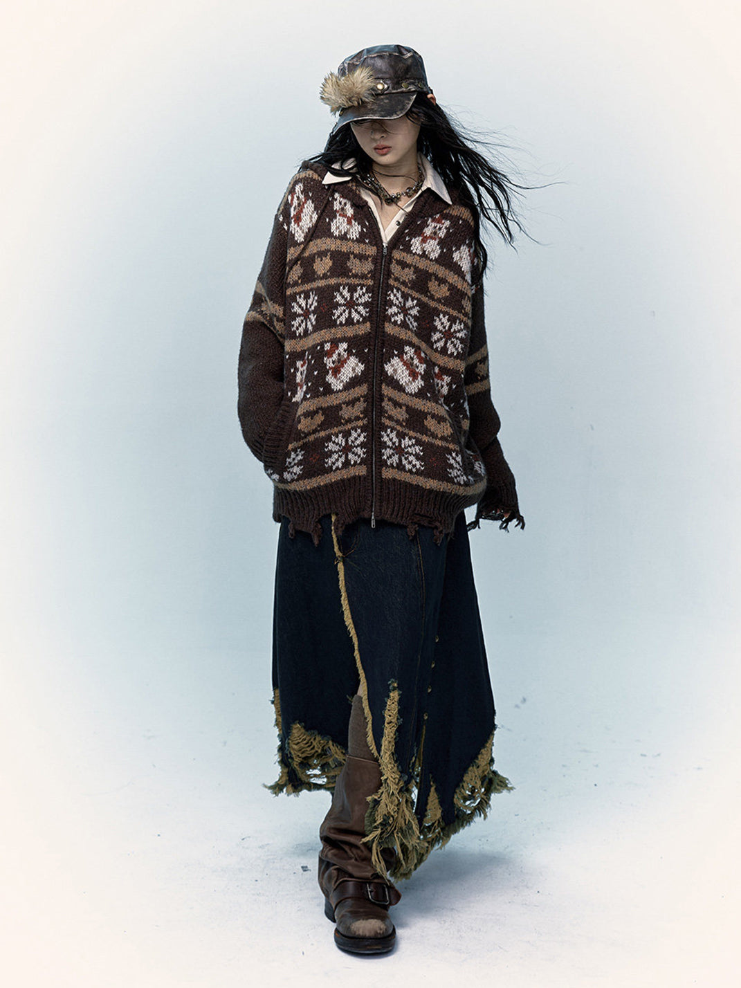 NO ROMANCE | Fair Isle Mohair Wool Knit Cardigan Sweater