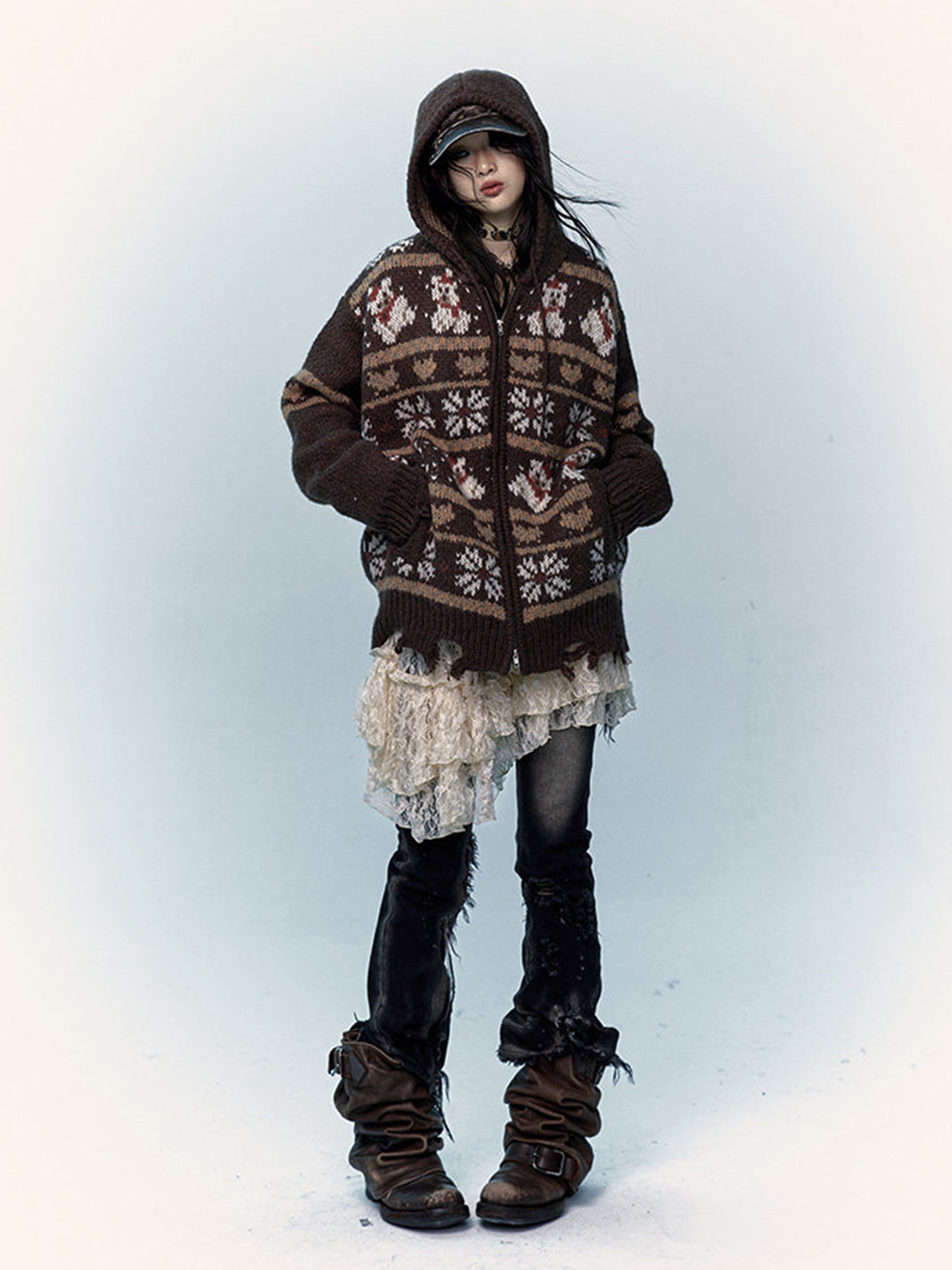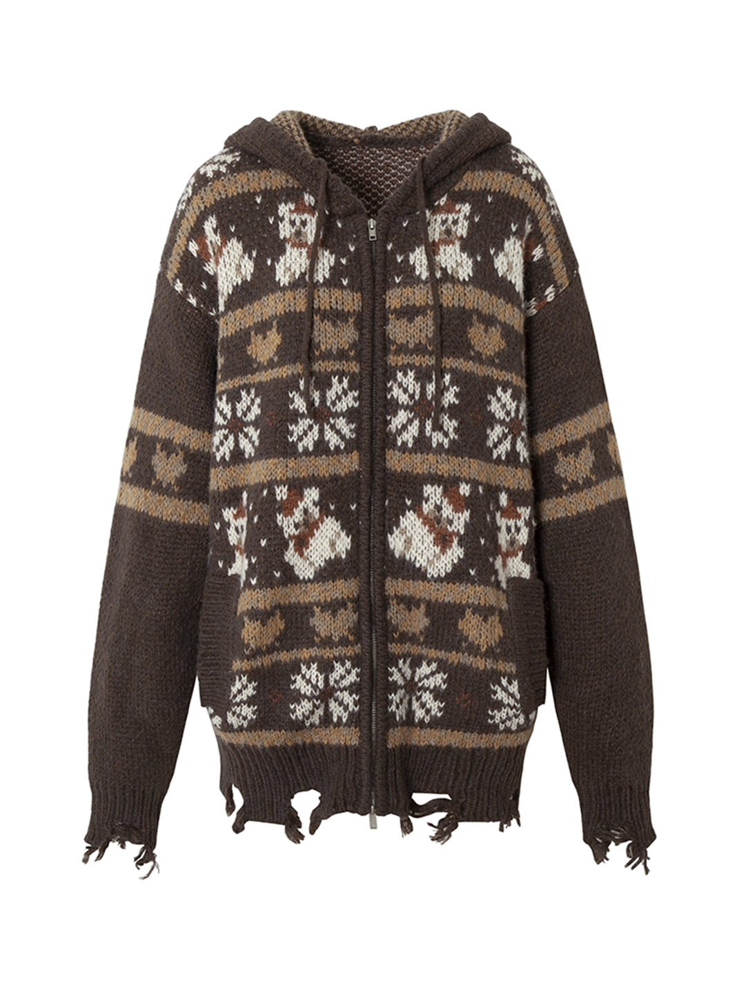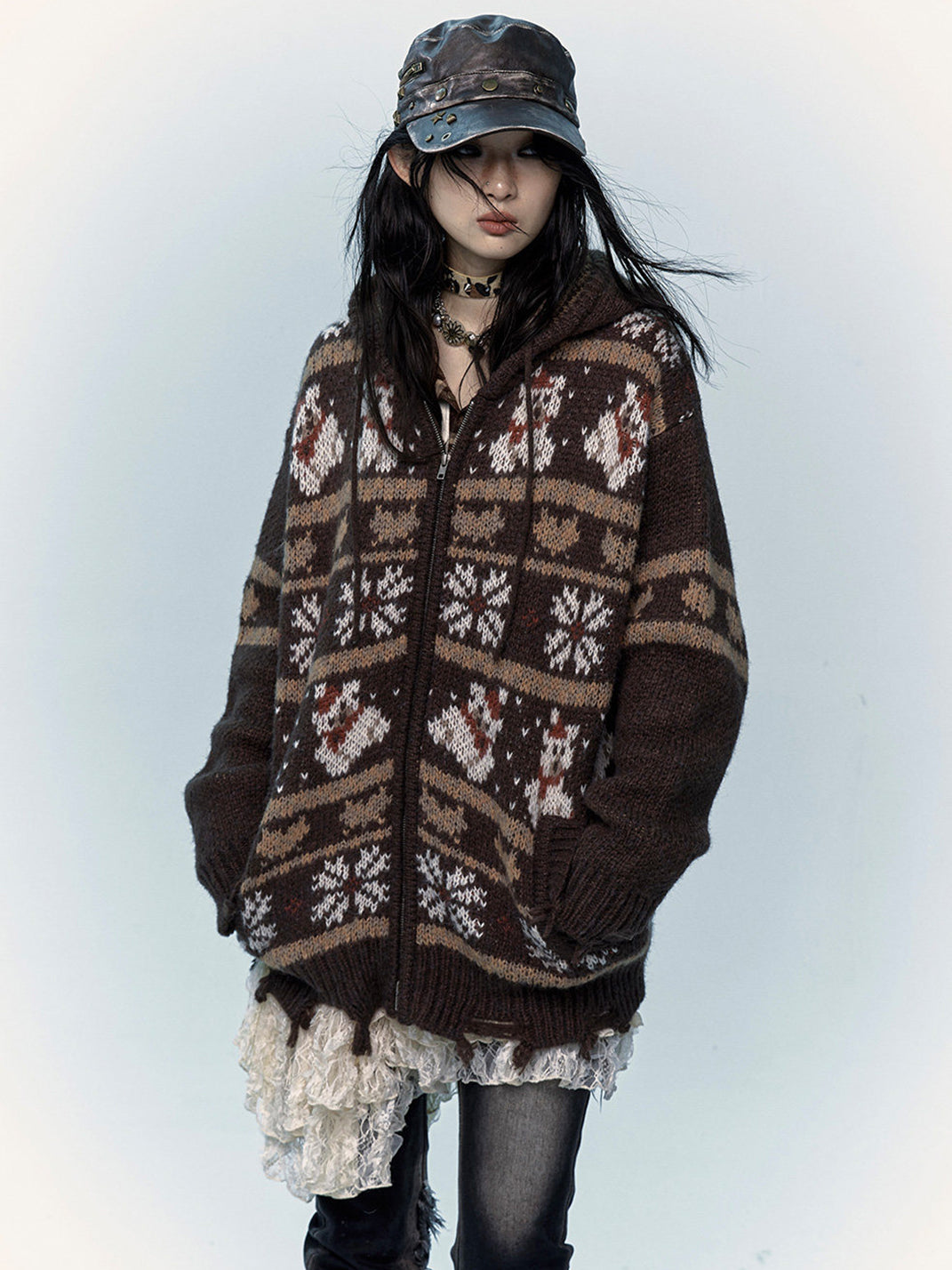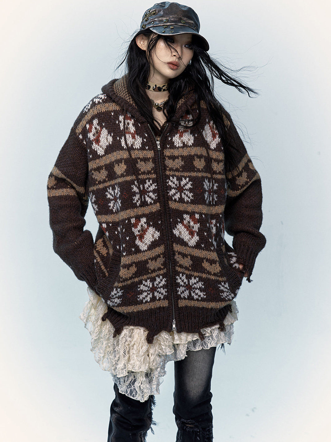 NO ROMANCE | Fair Isle Mohair Wool Knit Cardigan Sweater