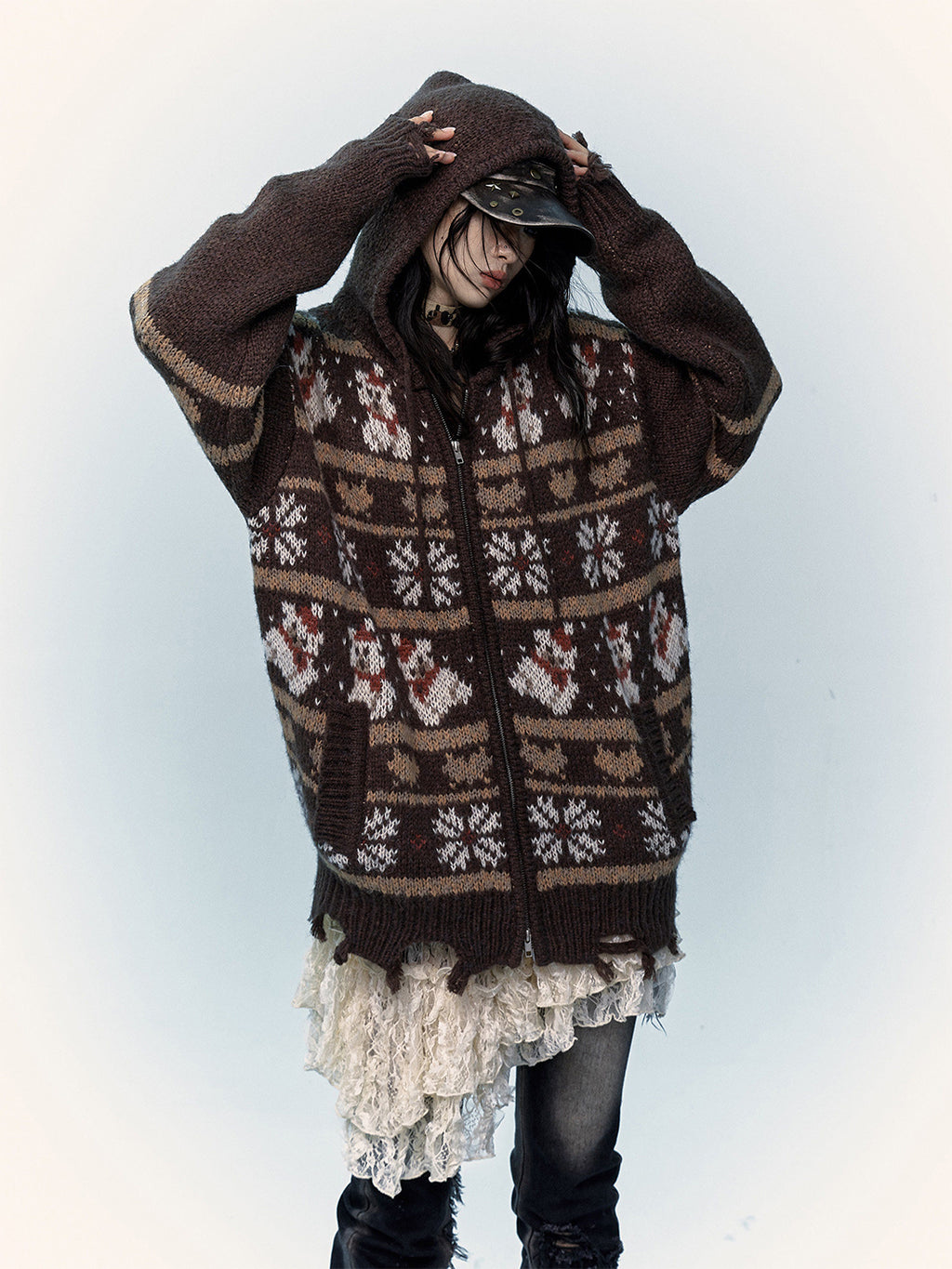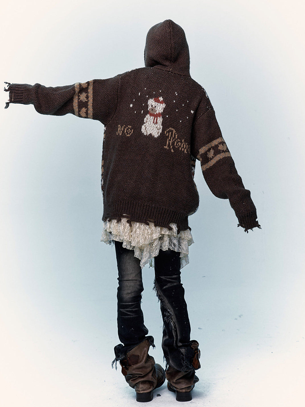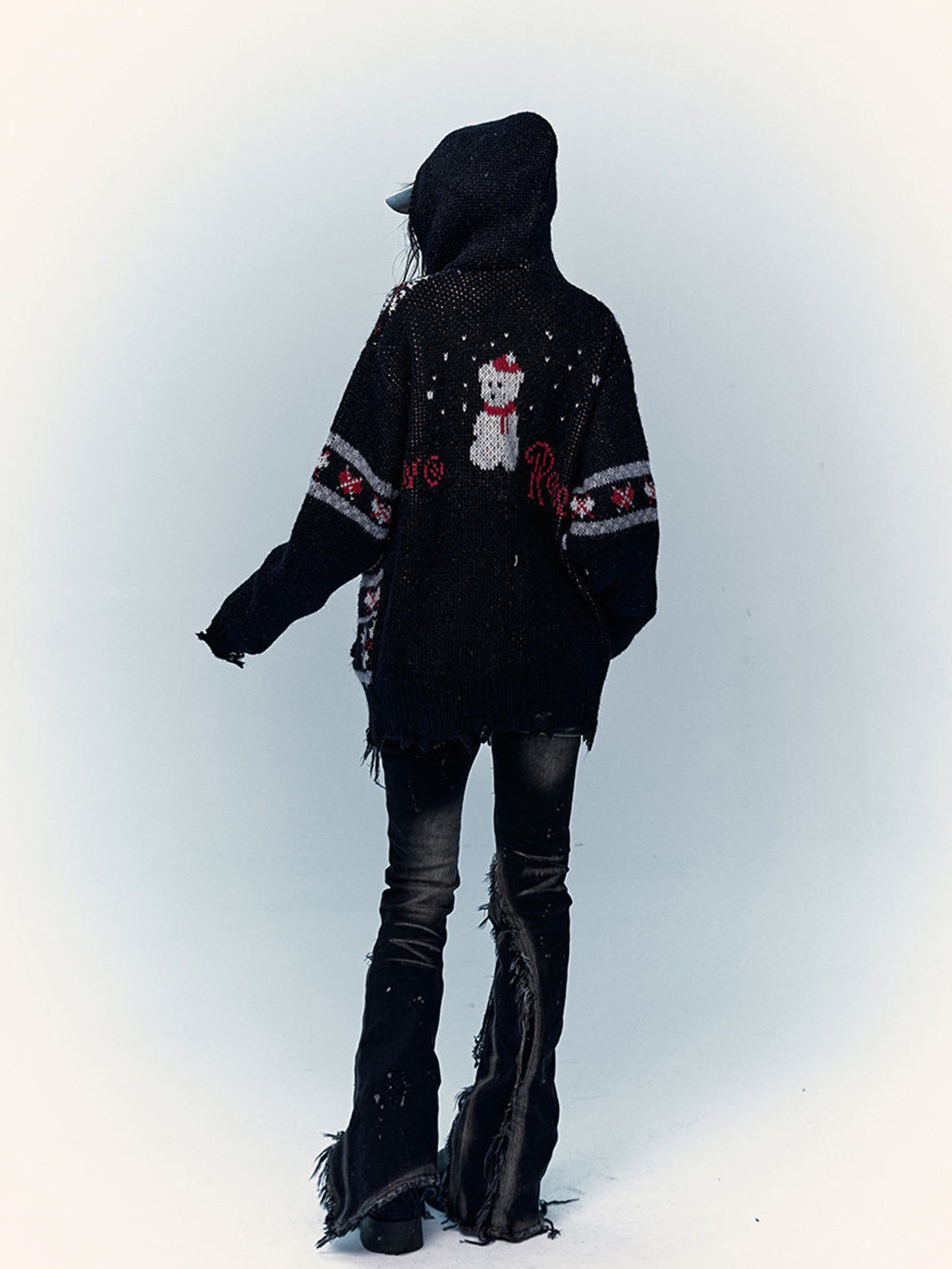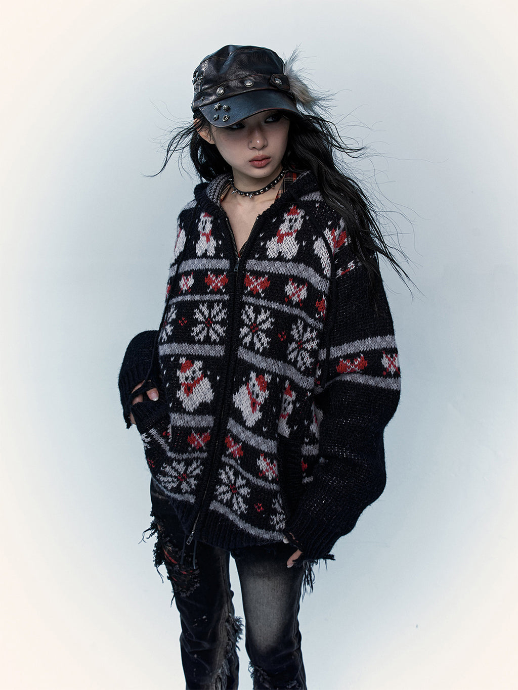 NO ROMANCE | Fair Isle Mohair Wool Knit Cardigan Sweater
