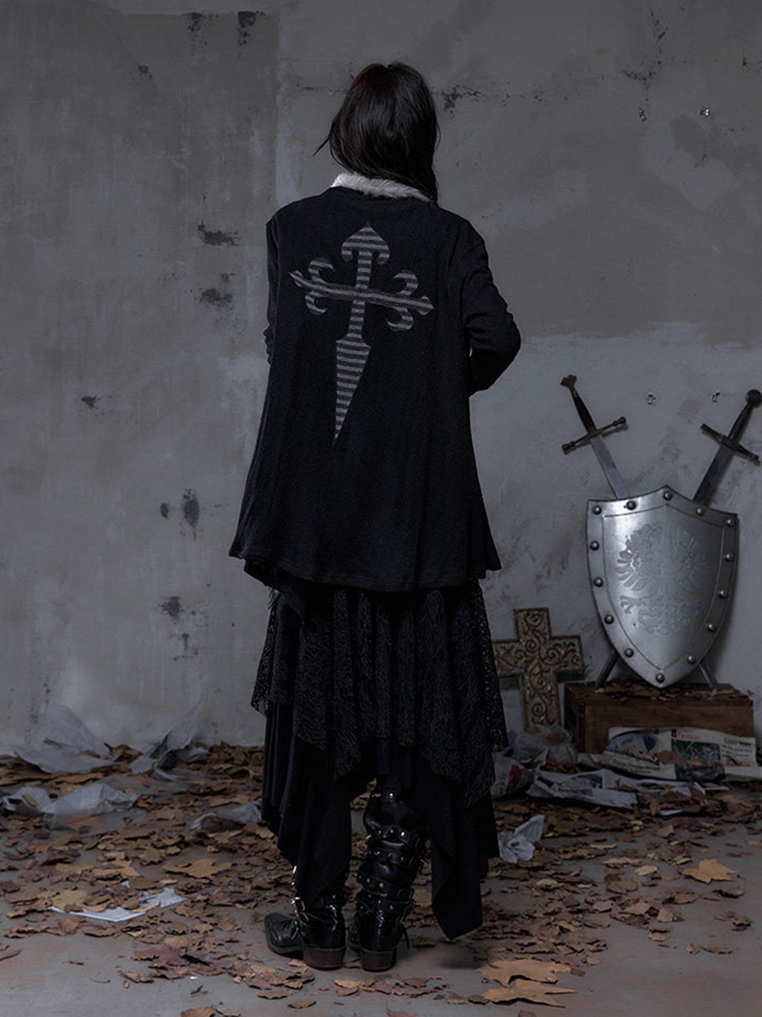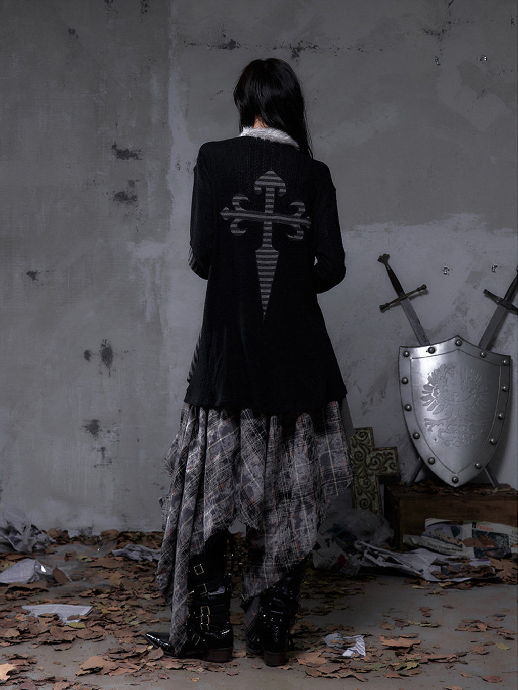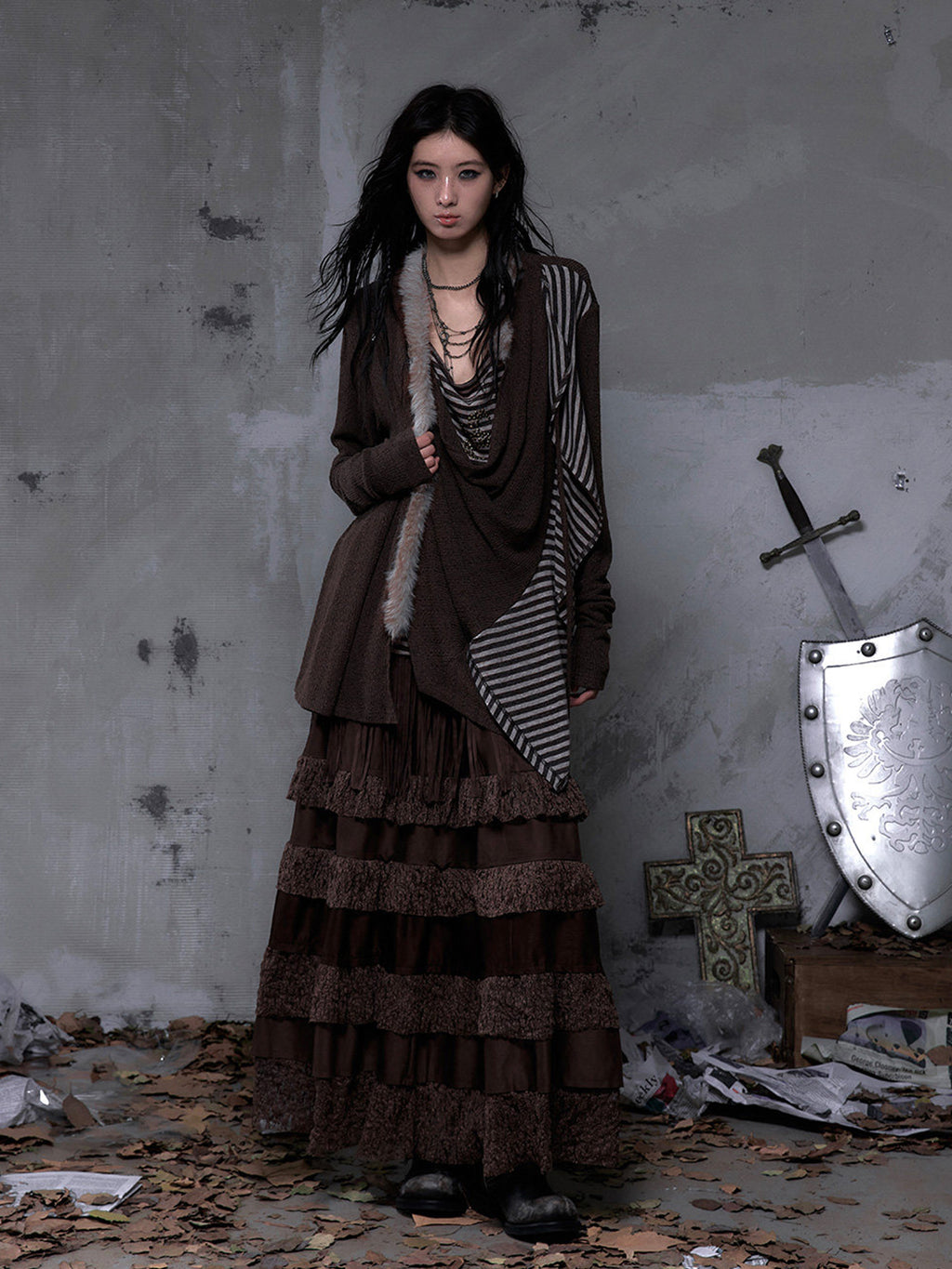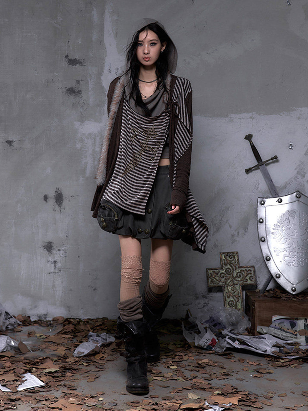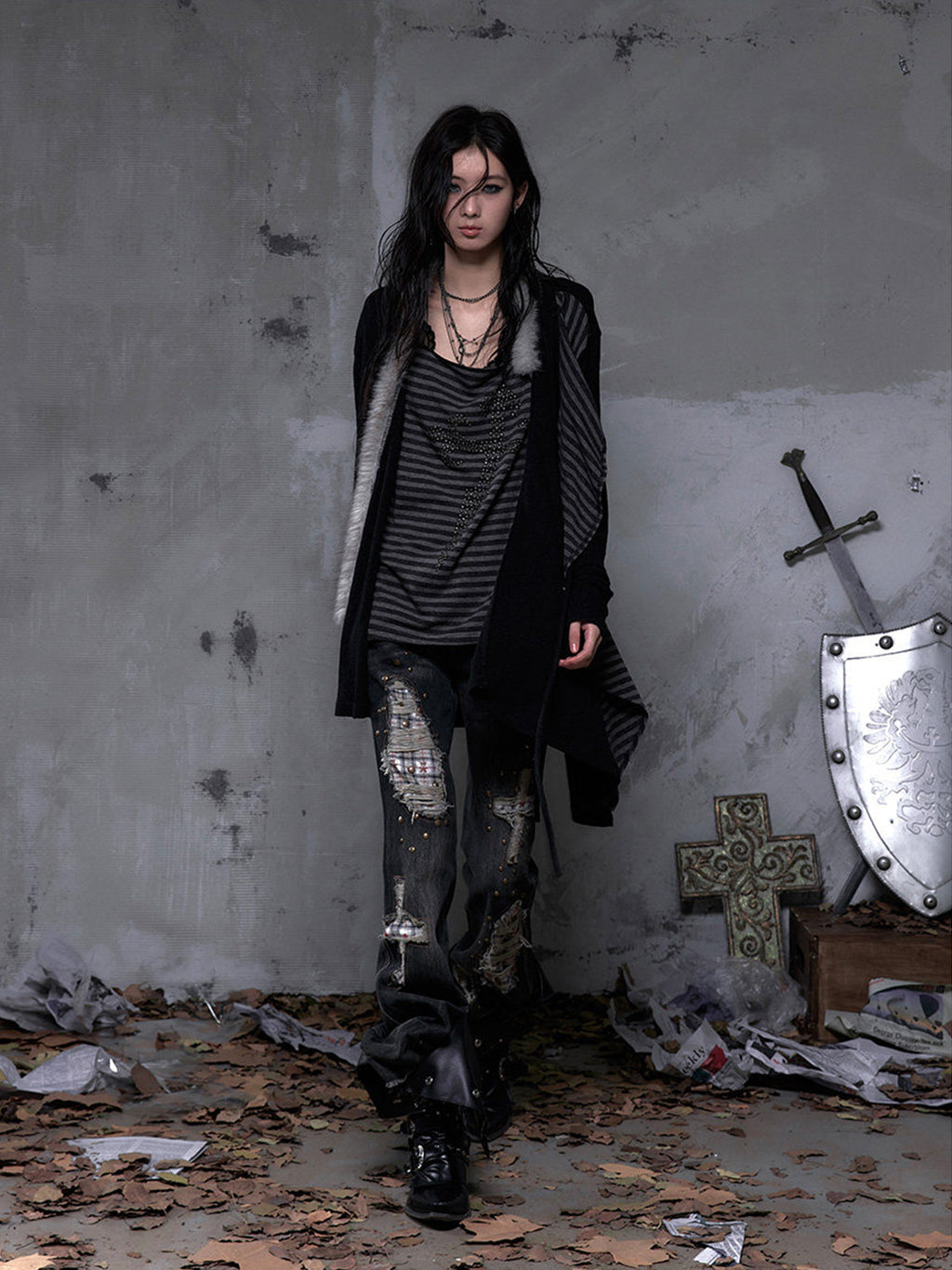 NO ROMANCE | Faux Two-Piece Rhinestone Striped Knit Cardigan Skip to content