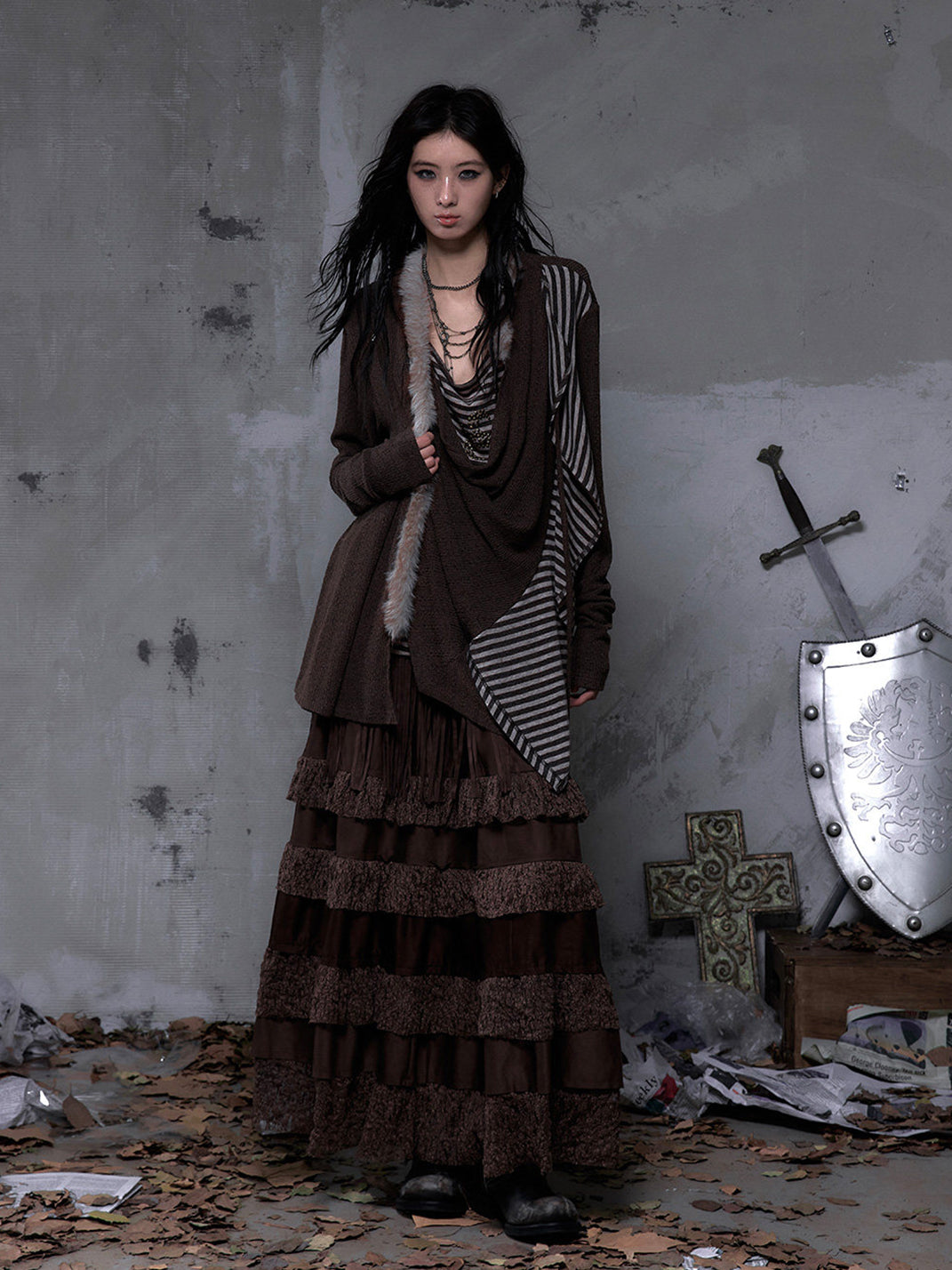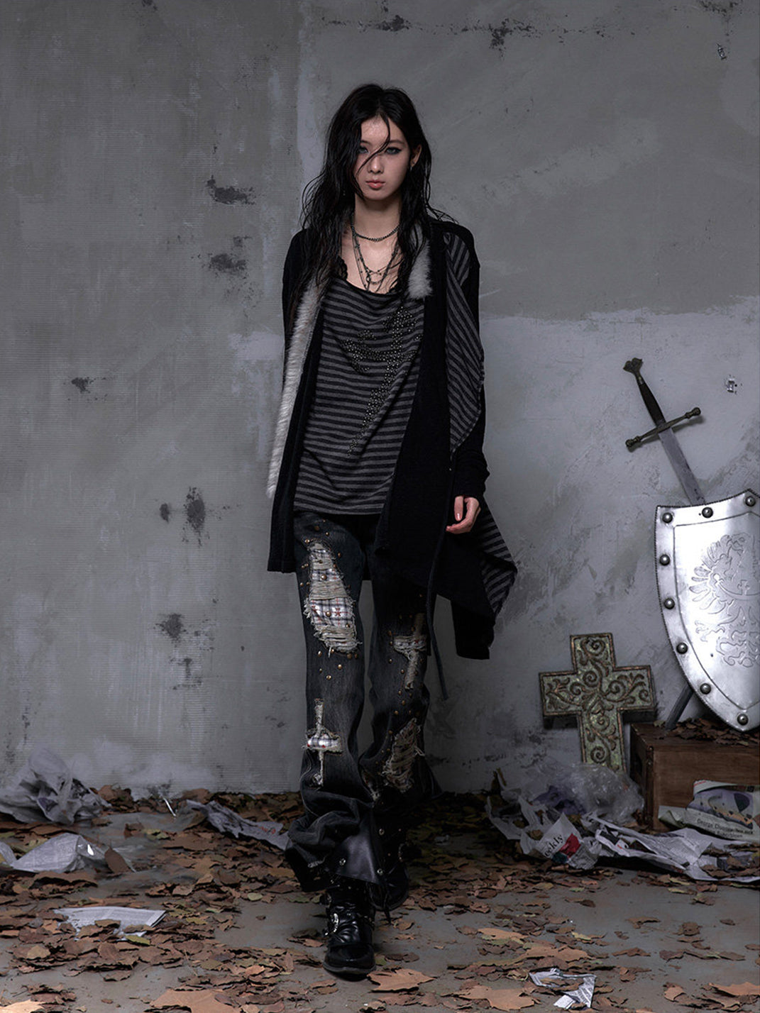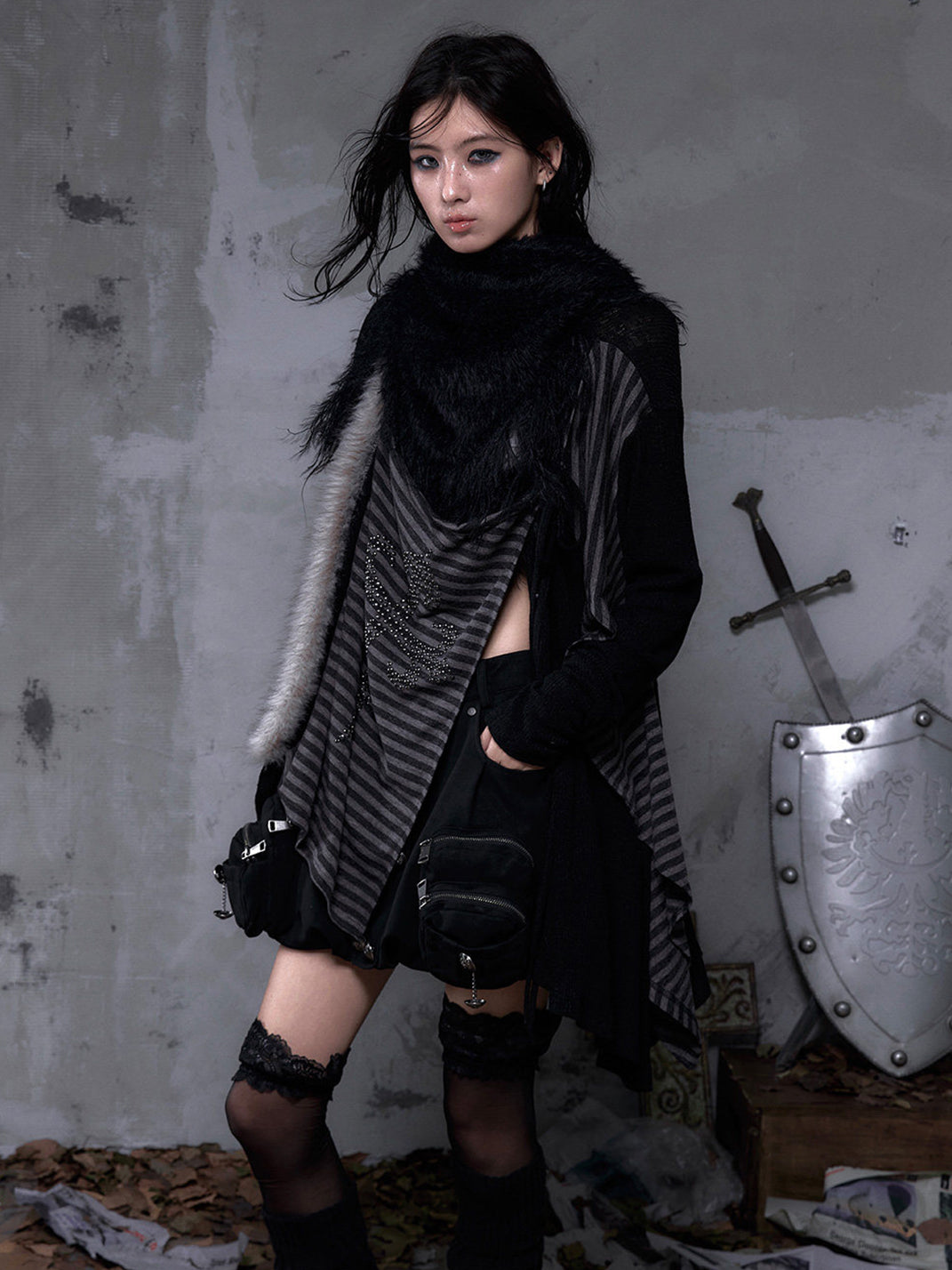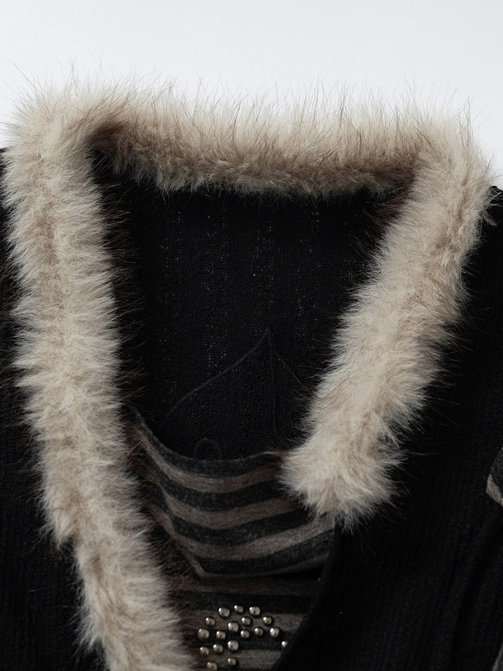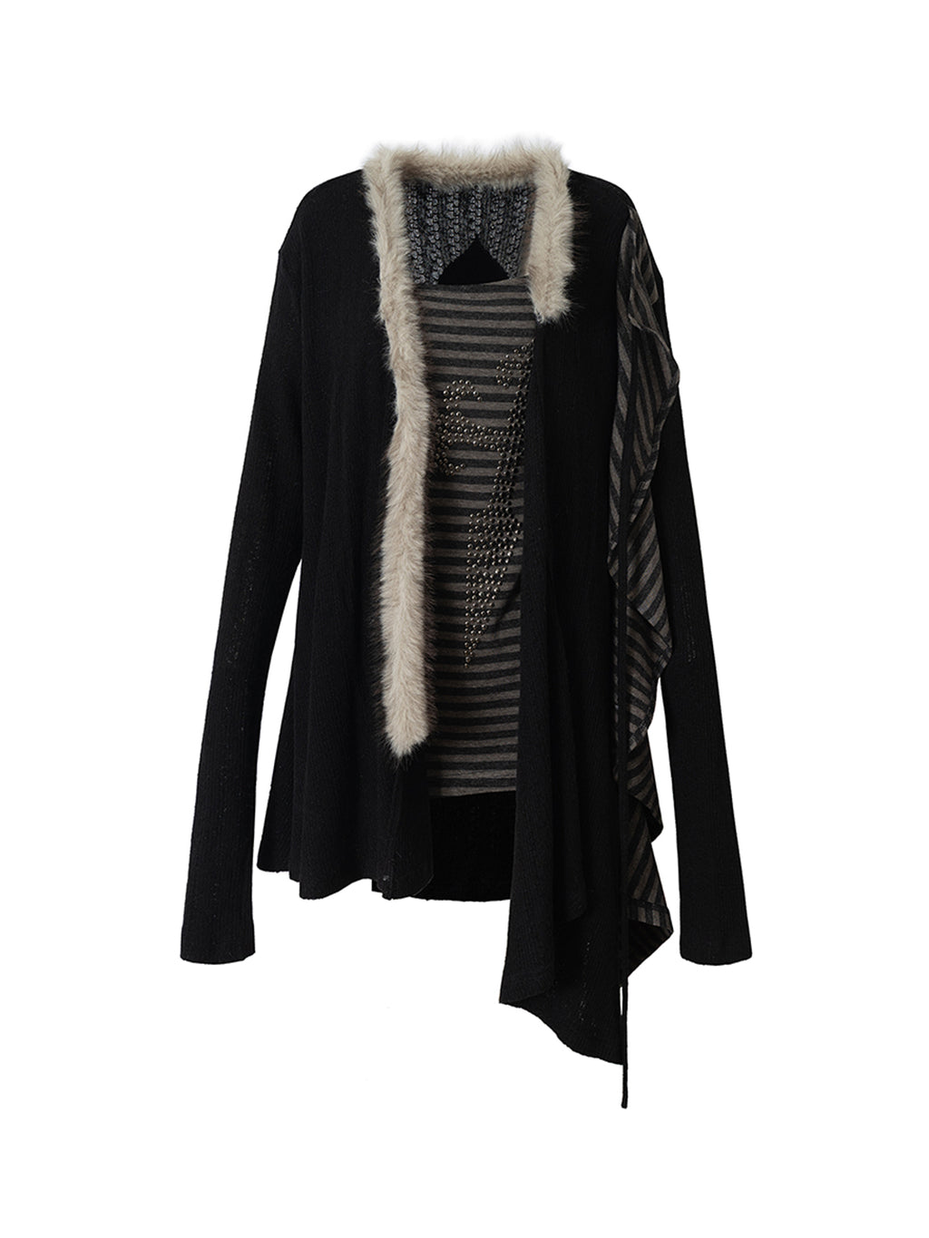 NO ROMANCE | Faux Two-Piece Rhinestone Striped Knit Cardigan