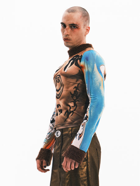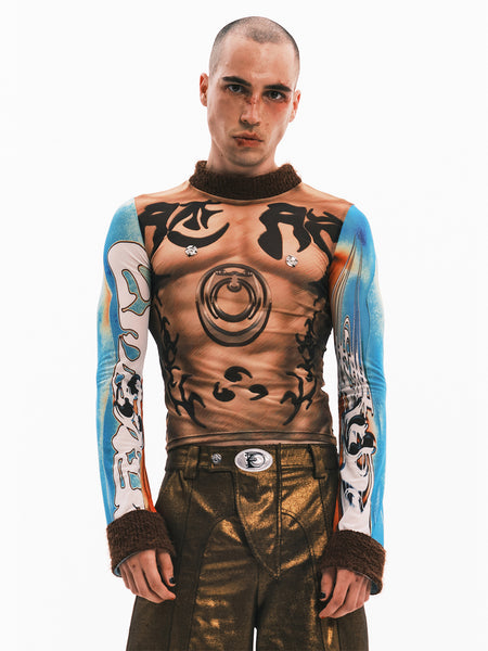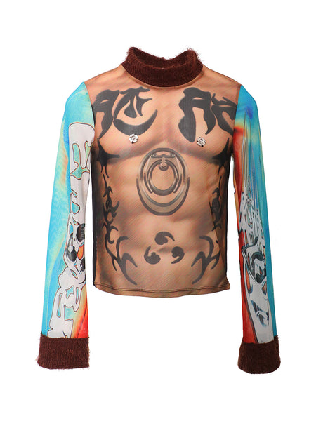 Embryo | Totem Print Mesh Patchwork Base Layer