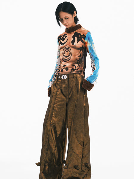 FULLTIDE | Leopard Print Leather Wide-Leg Pants