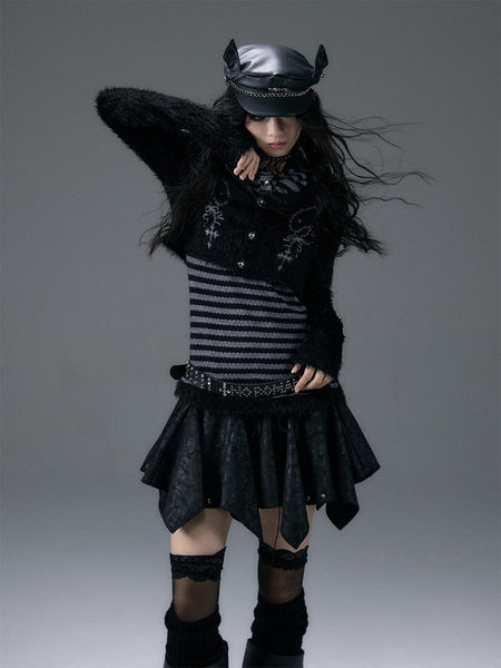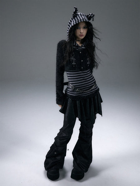 NONAME SPACE | Cat Ear Patchwork Striped Print ...
