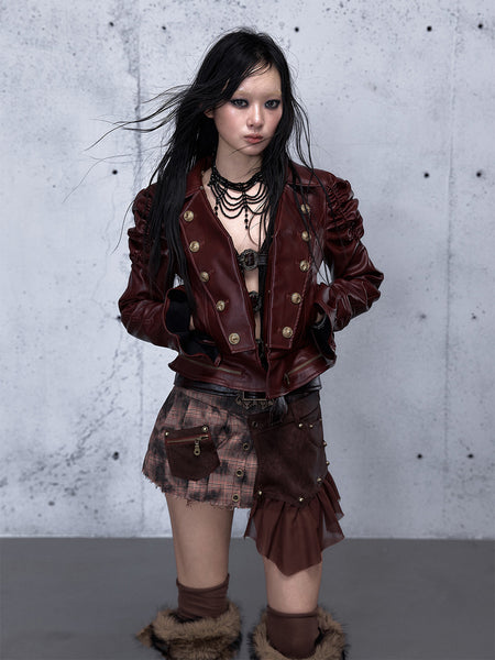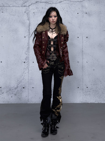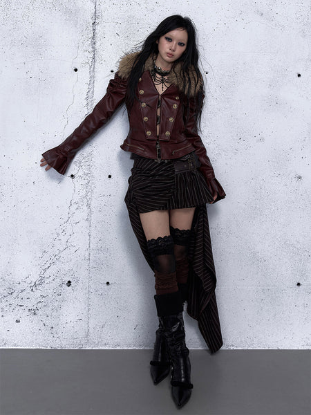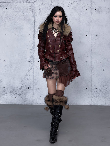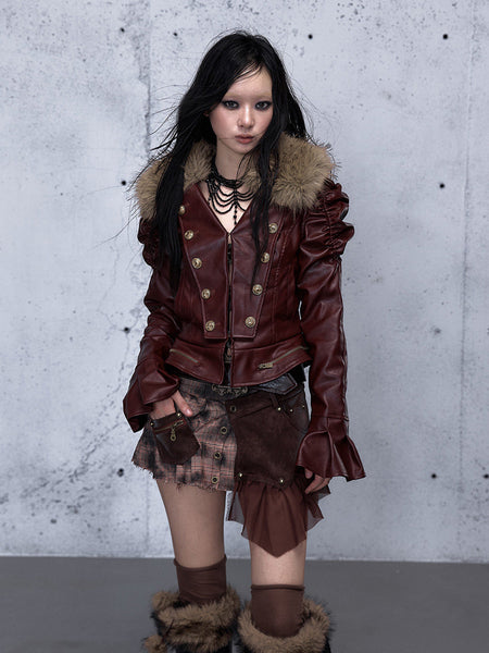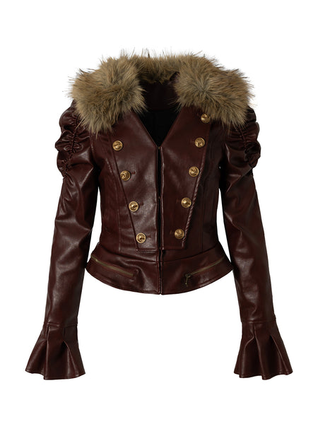 NO ROMANCE | Detachable Fur Collar Fitted Leath...