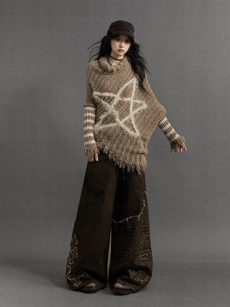 NO ROMANCE | Five-Pointed Star Striped Knit Swe...