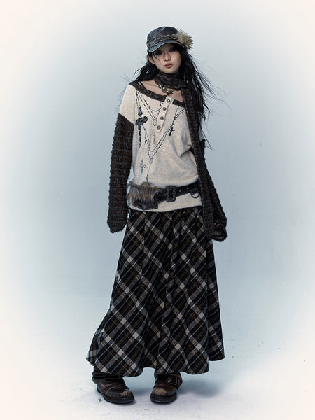 NO ROMANCE | Reversible Plaid Patchwork Wool Coat