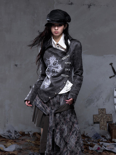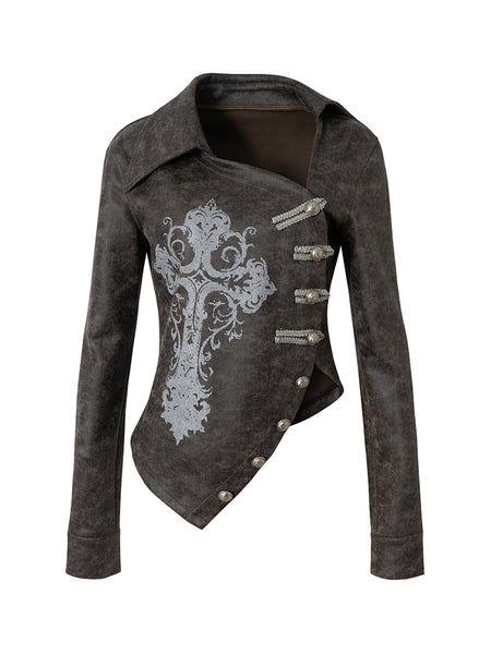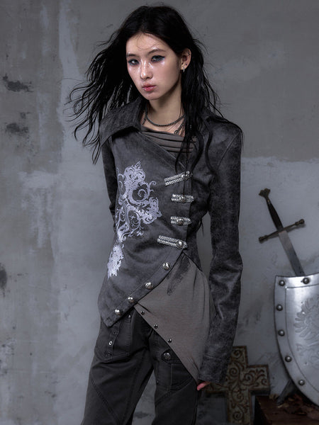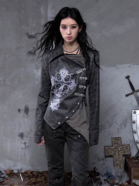 NO ROMANCE | Asymmetrical Slanted Placket Print...