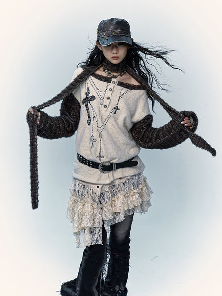 NO ROMANCE | Cross-Shaped Off-Shoulder Knit Top