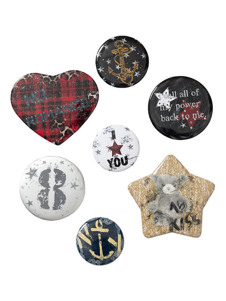 NO ROMANCE | Distressed Design Badge Metal Brooch